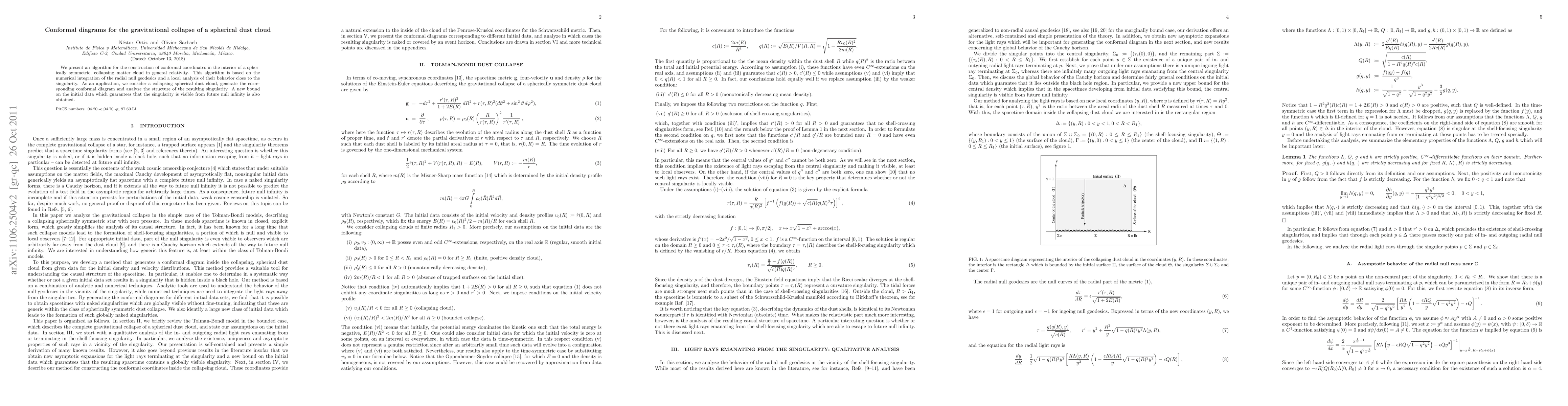 We present an algorithm for the construction of conformal coordinates in the interior of a spherically symmetric, collapsing matter cloud in general relativity. This algorithm is based on the numerical integration of the radial null geodesics and a local analysis of their behavior close to the singularity. As an application, we consider a collapsing spherical dust cloud, generate the corresponding conformal diagram and analyze the structure of the resulting singularity. A new bound on the initial data which guarantees that the singularity is visible from future null infinity is also obtained.