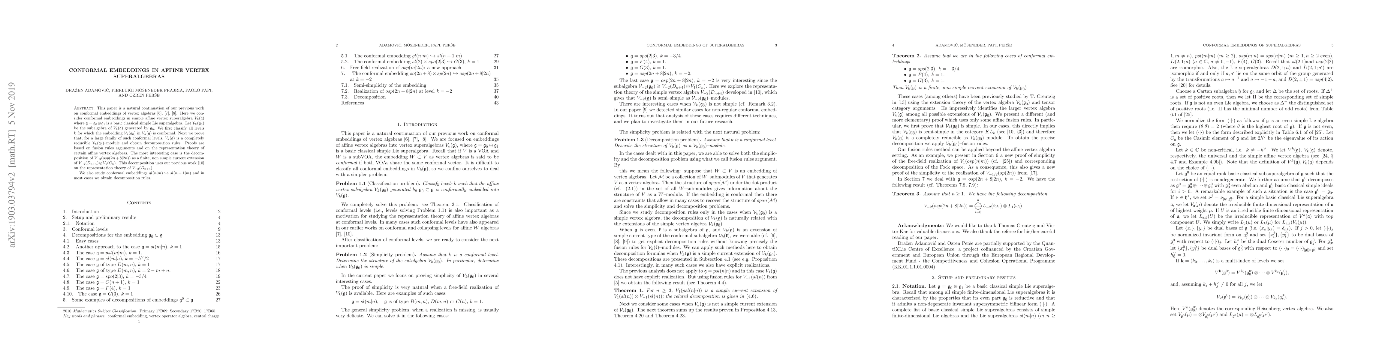 This paper extends prior research on conformal embeddings in vertex algebras to simple affine vertex superalgebras, classifying conformal levels and proving complete reducibility for many such levels. Special focus is given to the decomposition of $V_{-2} (osp(2n +8 \vert 2n))$ as a non-simple current extension, leveraging earlier work on $V_{-2} (D_{n+4})$.