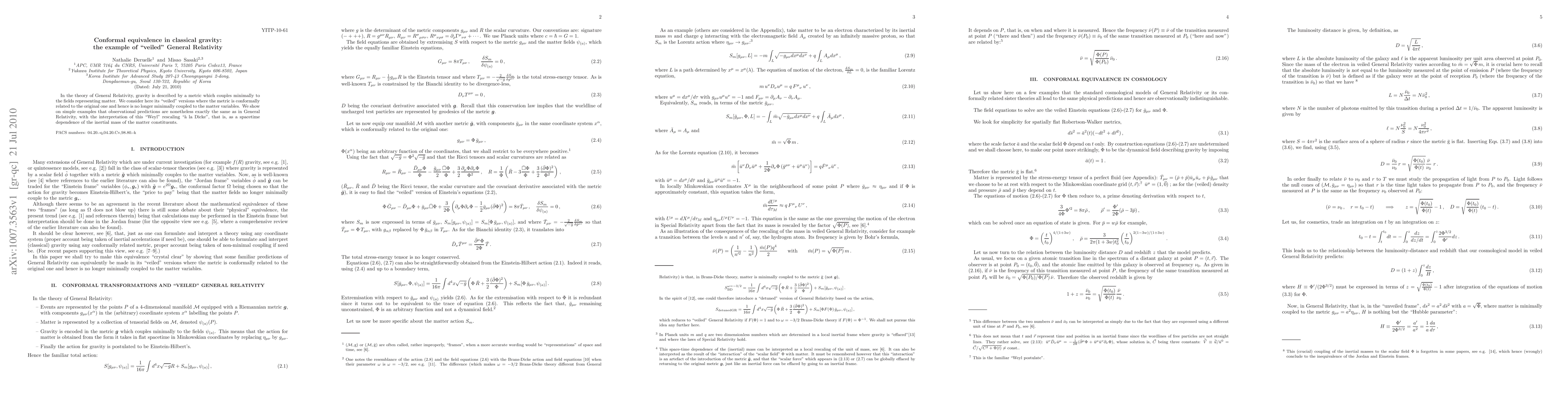 In the theory of General Relativity, gravity is described by a metric which couples minimally to the fields representing matter. We consider here its "veiled" versions where the metric is conformally related to the original one and hence is no longer minimally coupled to the matter variables. We show on simple examples that observational predictions are nonetheless exactly the same as in General Relativity, with the interpretation of this "Weyl" rescaling "\`a la Dicke", that is, as a spacetime dependence of the inertial mass of the matter constituents.
