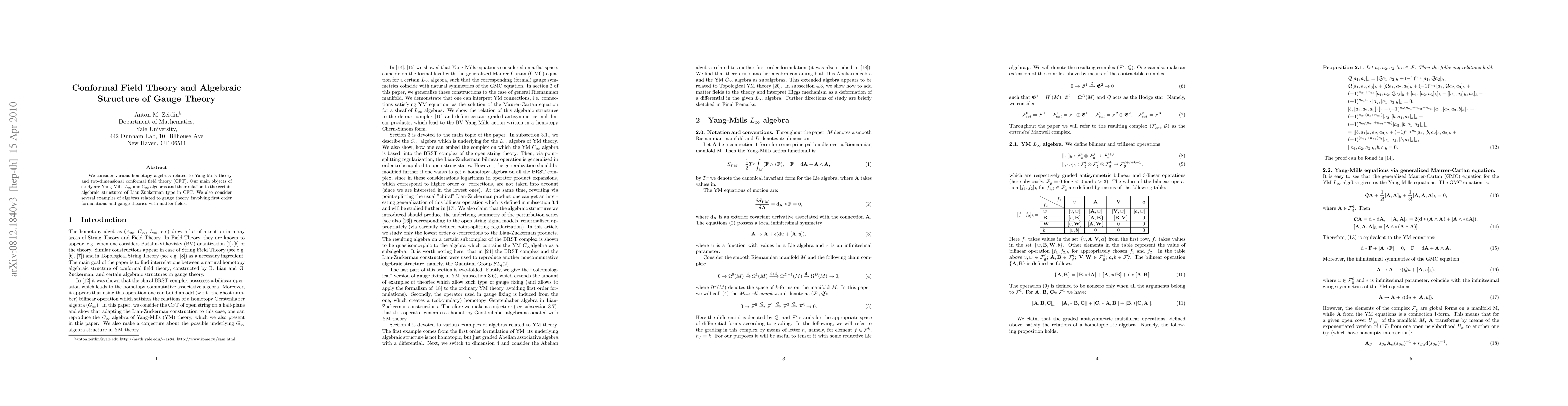 This paper explores homotopy algebras, specifically Yang-Mills $L_{\infty}$ and $C_{\infty}$ algebras, in relation to algebraic structures in two-dimensional conformal field theory, and provides examples involving first-order formulations and gauge theories with matter fields.