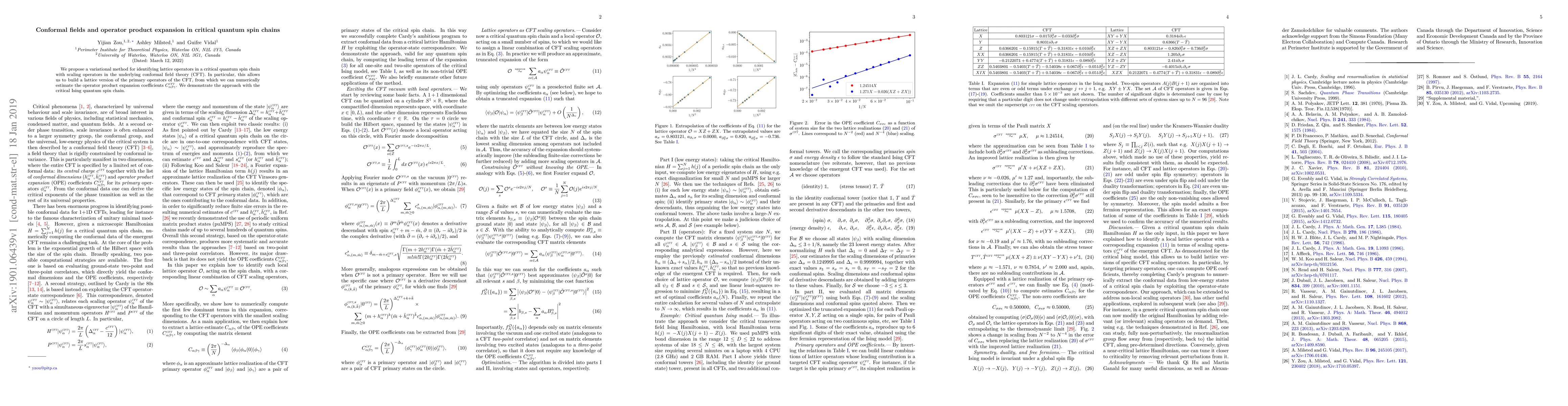 We propose a variational method for identifying lattice operators in a critical quantum spin chain with scaling operators in the underlying conformal field theory (CFT). In particular, this allows us to build a lattice version of the primary operators of the CFT, from which we can numerically estimate the operator product expansion coefficients $C_{\alpha\beta\gamma}^{\textrm{ CFT}}$. We demonstrate the approach with the critical Ising quantum spin chain.