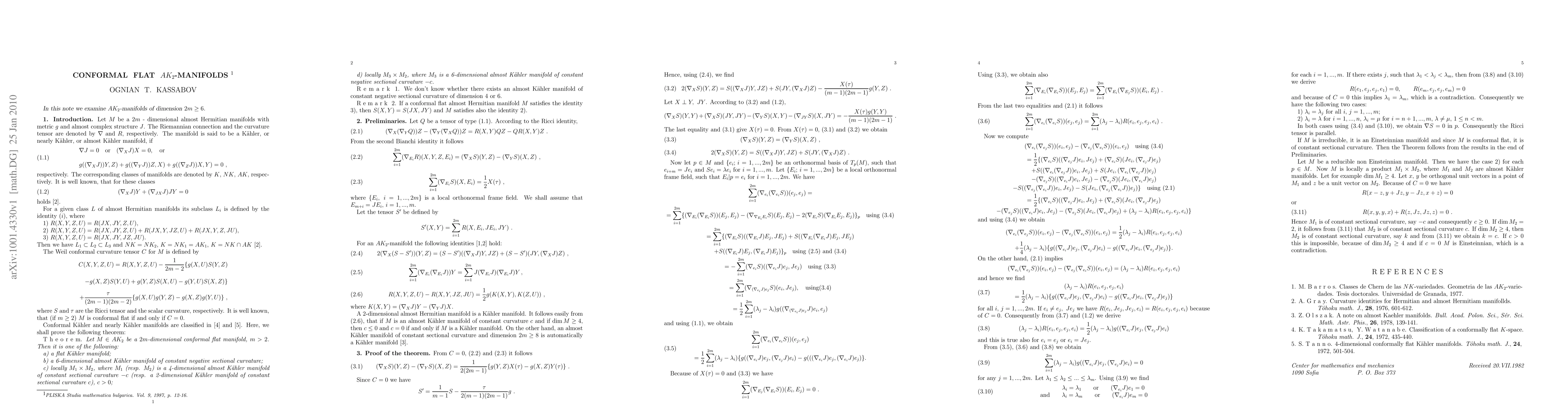 A classification theorem for conformal flat AK2 manifolds is proved.