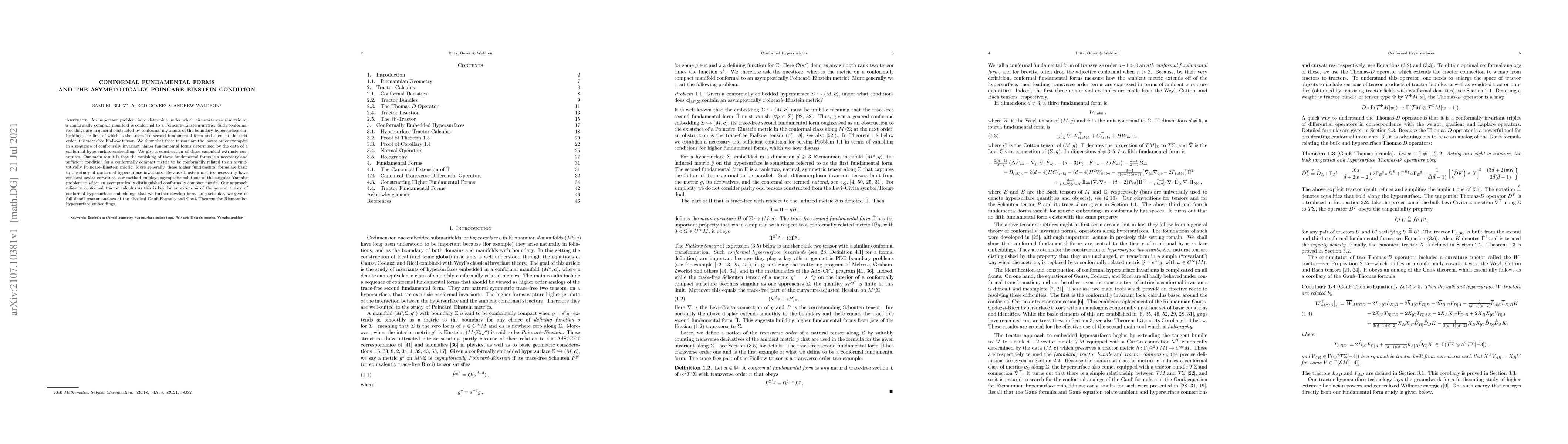 This paper investigates the conditions under which a conformally compact metric can be related to a Poincaré-Einstein metric, showing that the vanishing of certain conformally invariant higher fundamental forms is both necessary and sufficient for this conformal relation. The authors employ conformal tractor calculus to develop a general theory of conformal hypersurface embeddings and provide detailed tractor analogs of classical Gauss formulas.