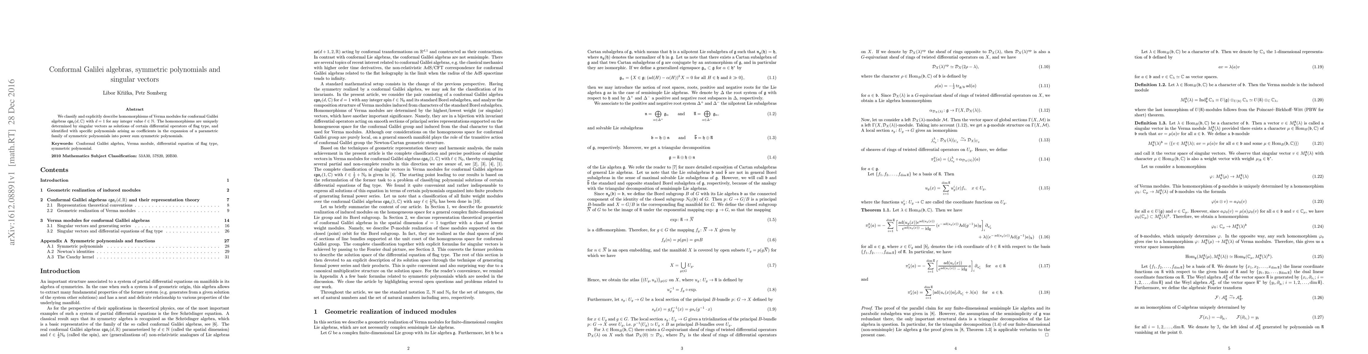 This paper classifies homomorphisms of Verma modules for conformal Galilei algebras, showing they are determined by singular vectors and linked to specific polynomials derived from the expansion of symmetric polynomials into power sum forms.