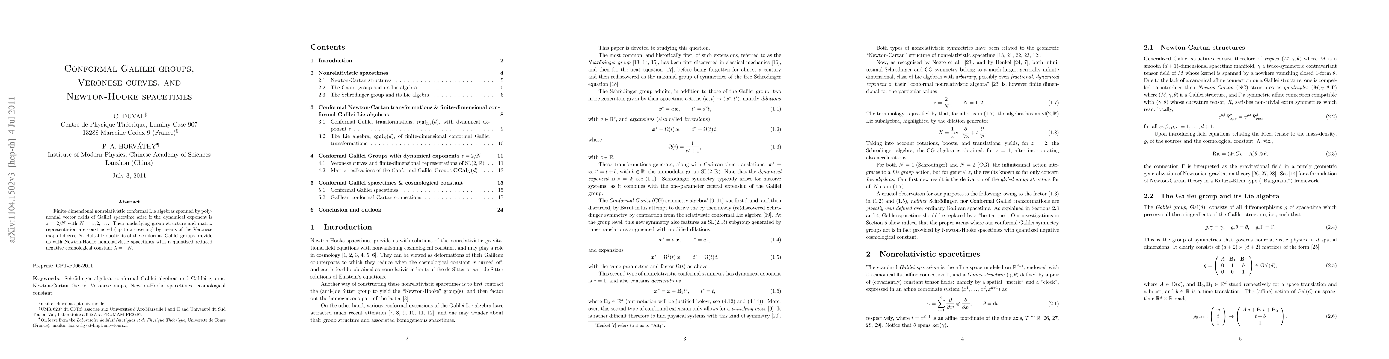 This paper constructs the finite-dimensional nonrelativistic conformal Lie algebras associated with Galilei spacetime, using the Veronese map to derive their group structure and matrix representation. It further explores how quotients of these groups lead to Newton-Hooke spacetimes with a quantized negative cosmological constant.
