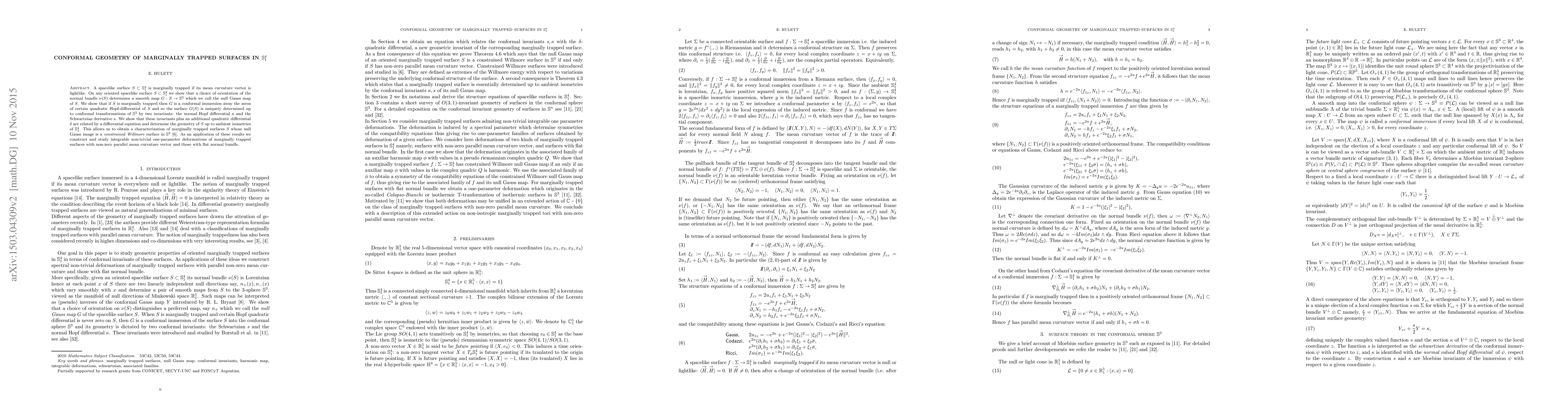 A new mathematical framework was developed to analyze the properties of marginally trapped surfaces, including the Calapso-Bianchi transformation.
