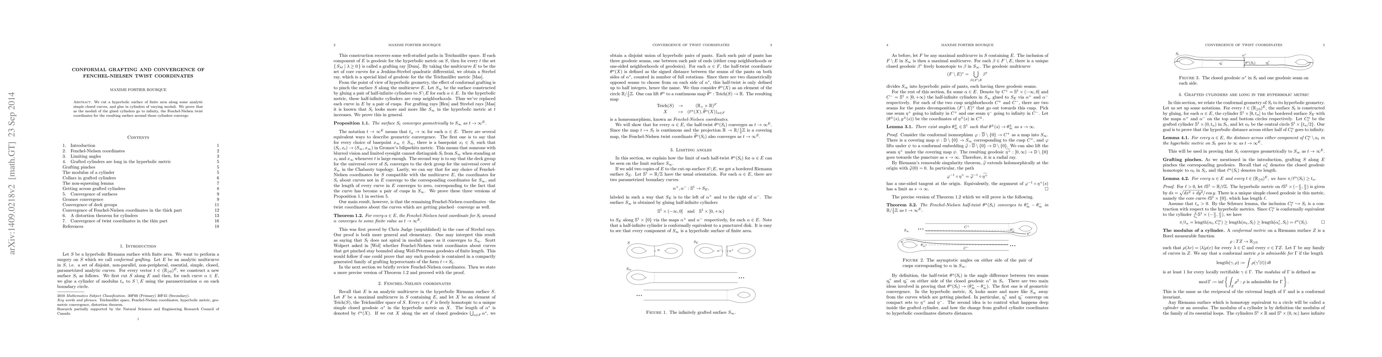 This paper demonstrates that conformal grafting of hyperbolic surfaces along analytic curves, with cylinders of increasing moduli, leads to convergence of Fenchel-Nielsen twist coordinates for the resulting surface as the cylinder moduli approach infinity.