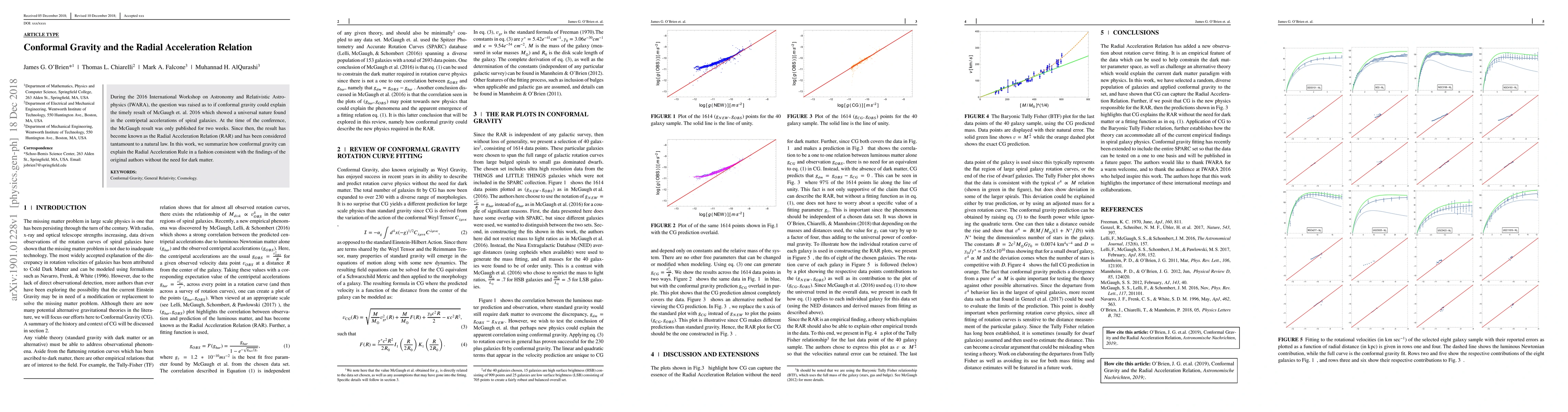 During the 2016 International Workshop on Astronomy and Relativistic Astrophysics (IWARA), the question was raised as to if conformal gravity could explain the timely result of McGaugh et. al. 2016 which showed a universal nature found in the centripetal accelerations of spiral galaxies. At the time of the conference, the McGaugh result was only published for two weeks. Since then, the result has become known as the Radial Acceleration Relation (RAR) and has been considered tantamount to a natural law. In this work, we summarize how conformal gravity can explain the Radial Acceleration Rule in a fashion consistent with the findings of the original authors without the need for dark matter.