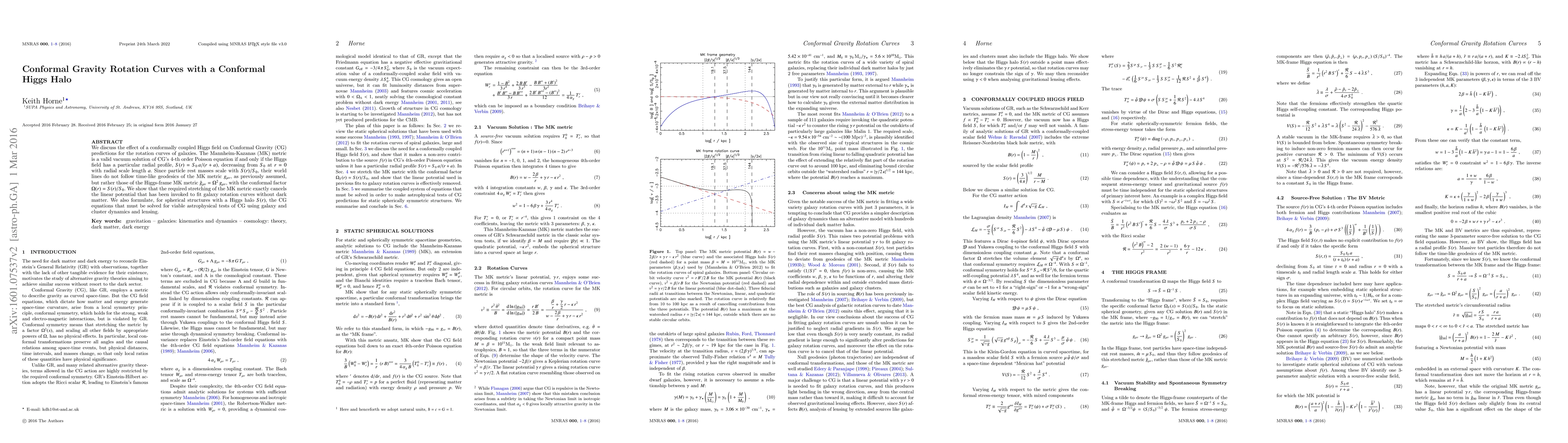 The paper presents a detailed analysis of how a conformally coupled Higgs field with a specific radial profile S(r) = S_0 a/(r+a) modifies the MK metric and geodesics in Conformal Gravity, offering a potential explanation for galaxy rotation curves without dark matter.