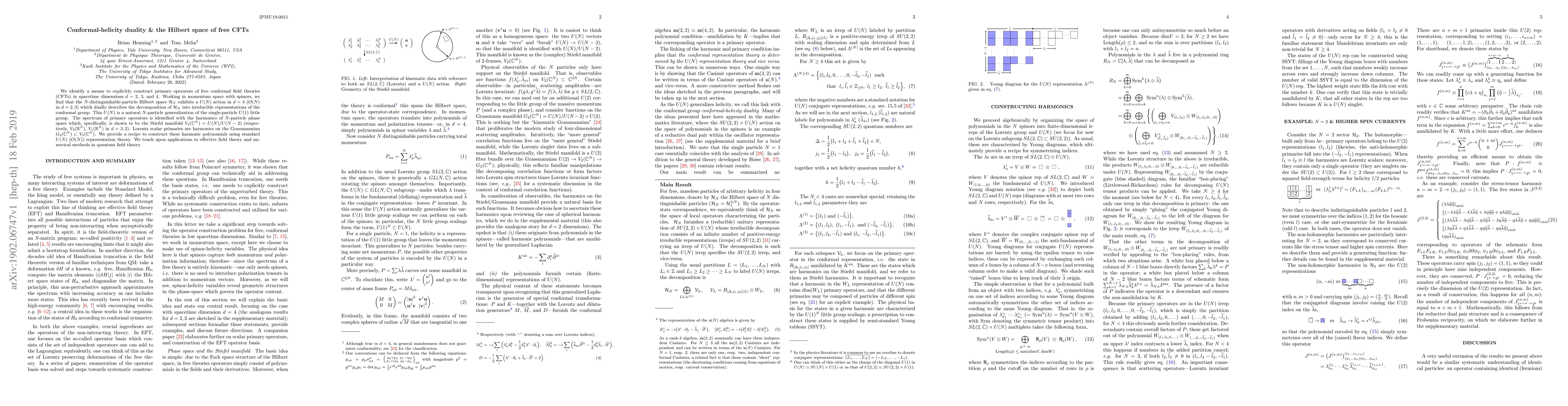 We identify a means to explicitly construct primary operators of free conformal field theories (CFTs) in spacetime dimensions $d=2,~3$, and $4$. Working in momentum space with spinors, we find that the $N$-distinguishable-particle Hilbert space $\mathcal{H}_N$ exhibits a $U(N)$ action in $d=4$ ($O(N)$ in $d=2,3$) which dually describes the decomposition of $\mathcal{H}_N$ into irreducible representations of the conformal group. This $U(N)$ is a natural $N$-particle generalization of the single-particle $U(1)$ little group. The spectrum of primary operators is identified with the harmonics of $N$-particle phase space which, specifically, is shown to be the Stiefel manifold $V_2(\mathbb{C}^N) = U(N)/U(N-2)$ (respectively, $V_2(\mathbb{R}^N)$, $V_1(\mathbb{R}^N)$ in $d=3,2$). Lorentz scalar primaries are harmonics on the Grassmannian $G_2(\mathbb{C}^N) \subset V_2(\mathbb{C}^N)$. We provide a recipe to construct these harmonic polynomials using standard $U(N)$ ($O(N)$) representation theory. We touch upon applications to effective field theory and numerical methods in quantum field theory.
