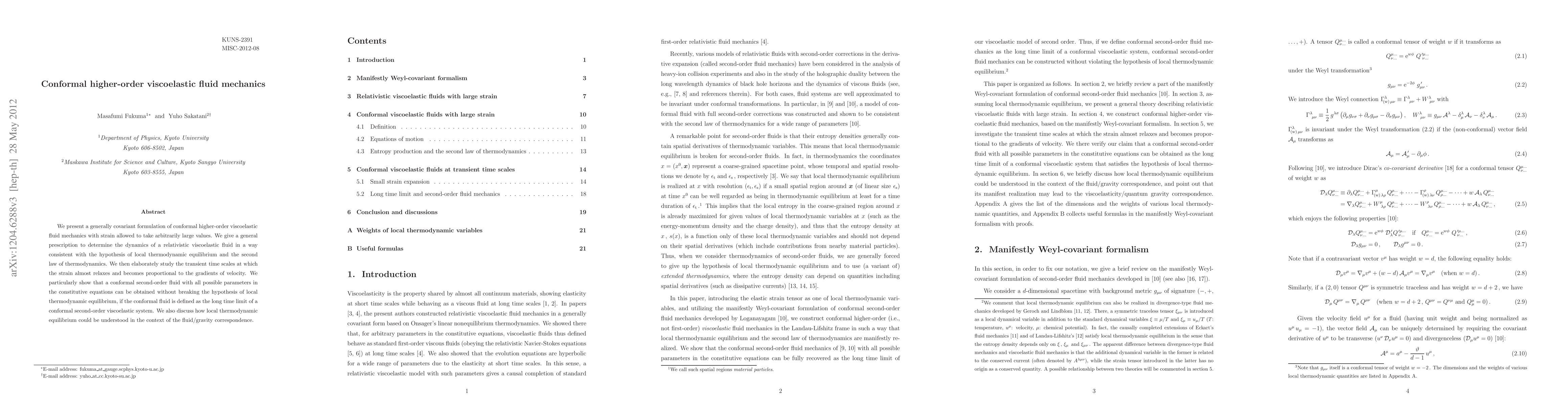 This paper develops a covariant formulation for conformal higher-order viscoelastic fluid mechanics, ensuring consistency with local thermodynamic equilibrium and the second law of thermodynamics. It explores transient time scales and demonstrates that a conformal second-order fluid can be derived without violating equilibrium assumptions, linking these findings to the fluid/gravity correspondence.