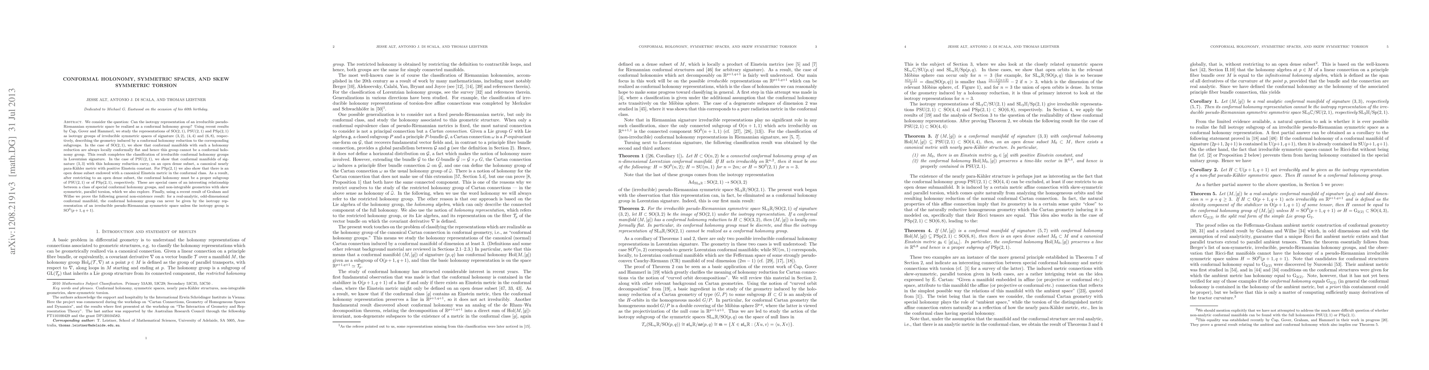 The paper presents a detailed analysis of conformal holonomy groups, classifying them in Lorentzian signature and proving a general non-existence result for real-analytic, odd-dimensional conformal manifolds.