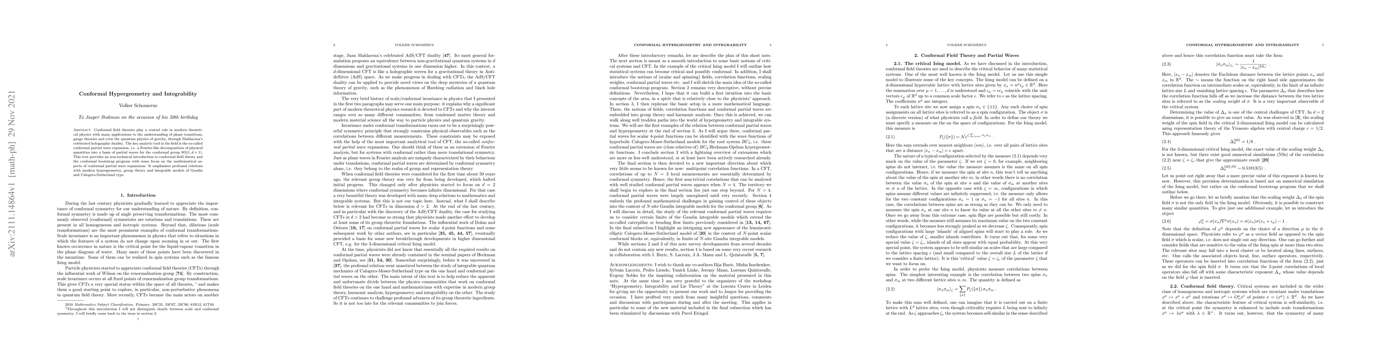 This paper offers a non-technical introduction to conformal field theory and the conformal bootstrap, highlighting the mathematical aspects of conformal partial wave expansions and their connections to modern hypergeometry, group theory, and integrable models. It underscores the role of conformal hypergeometry in understanding integrability within theoretical physics.