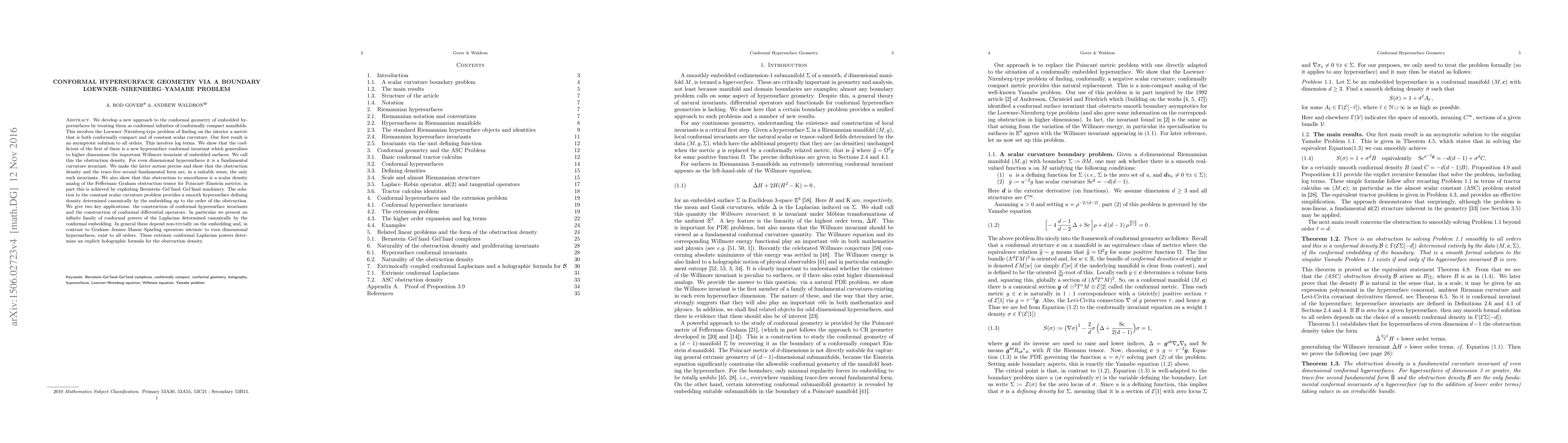 Researchers develop a new approach to conformal geometry of embedded hypersurfaces by solving a boundary Loewner-Nirenberg-Yamabe problem, finding a metric with constant scalar curvature, and introducing the obstruction density, a fundamental curvature invariant that generalizes the Willmore invariant.