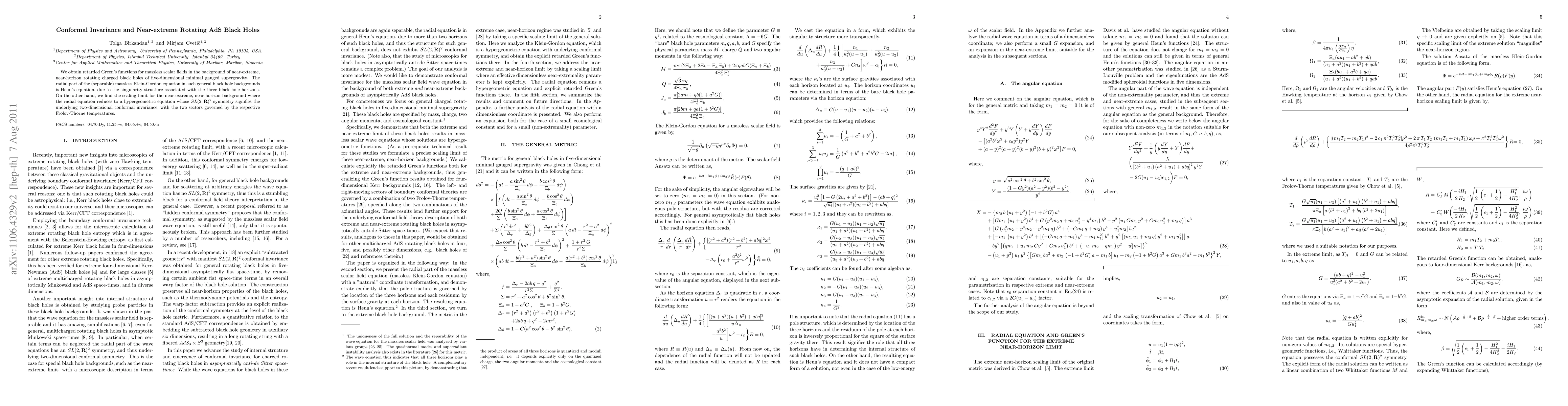 The paper presents detailed derivations and explicit solutions for the radial part of the massless scalar wave equation in near-extreme, near-horizon rotating charged AdS black hole backgrounds, uncovering conformal invariance and providing retarded Green's functions.
