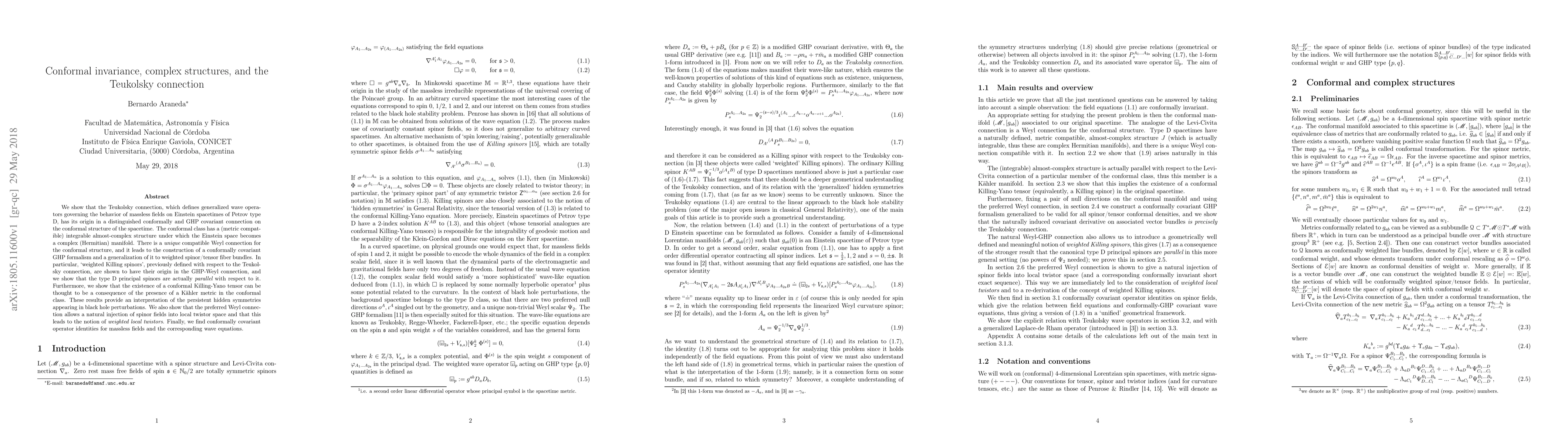 We show that the Teukolsky connection, which defines generalized wave operators governing the behavior of massless fields on Einstein spacetimes of Petrov type D, has its origin in a distinguished conformally and GHP covariant connection on the conformal structure of the spacetime. The conformal class has a (metric compatible) integrable almost-complex structure under which the Einstein space becomes a complex (Hermitian) manifold. There is a unique compatible Weyl connection for the conformal structure, and it leads to the construction of a conformally covariant GHP formalism and a generalization of it to weighted spinor/tensor fiber bundles. In particular, `weighted Killing spinors', previously defined with respect to the Teukolsky connection, are shown to have their origin in the GHP-Weyl connection, and we show that the type D principal spinors are actually parallel with respect to it. Furthermore, we show that the existence of a conformal Killing-Yano tensor can be thought to be a consequence of the presence of a Kahler metric in the conformal class. These results provide an interpretation of the persistent hidden symmetries appearing in black hole perturbations. We also show that the preferred Weyl connection allows a natural injection of spinor fields into local twistor space and that this leads to the notion of weighted local twistors. Finally, we find conformally covariant operator identities for massless fields and the corresponding wave equations.