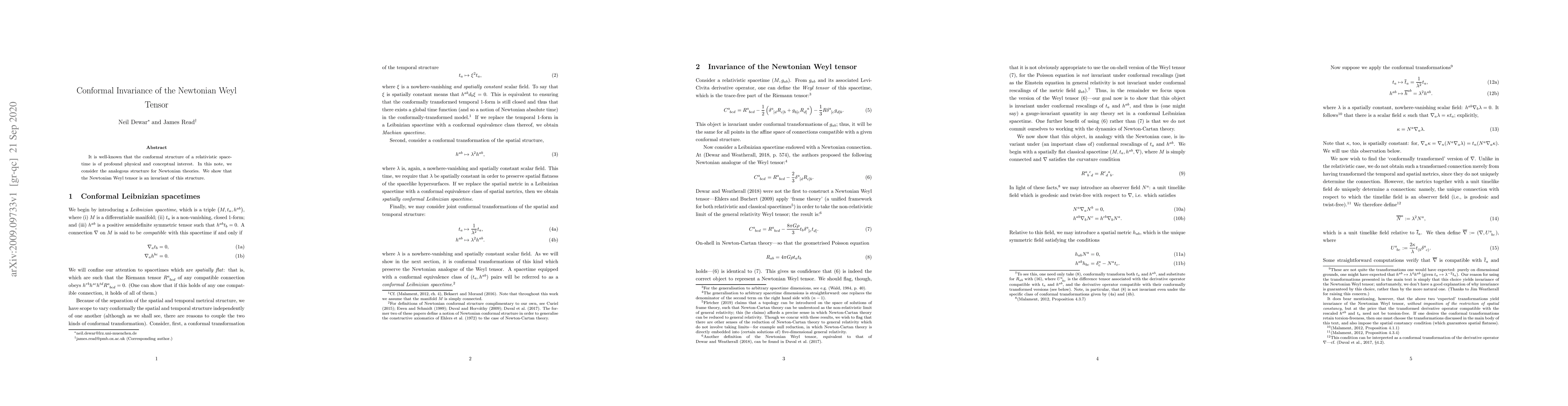 It is well-known that the conformal structure of a relativistic spacetime is of profound physical and conceptual interest. In this note, we consider the analogous structure for Newtonian theories. We show that the Newtonian Weyl tensor is an invariant of this structure.