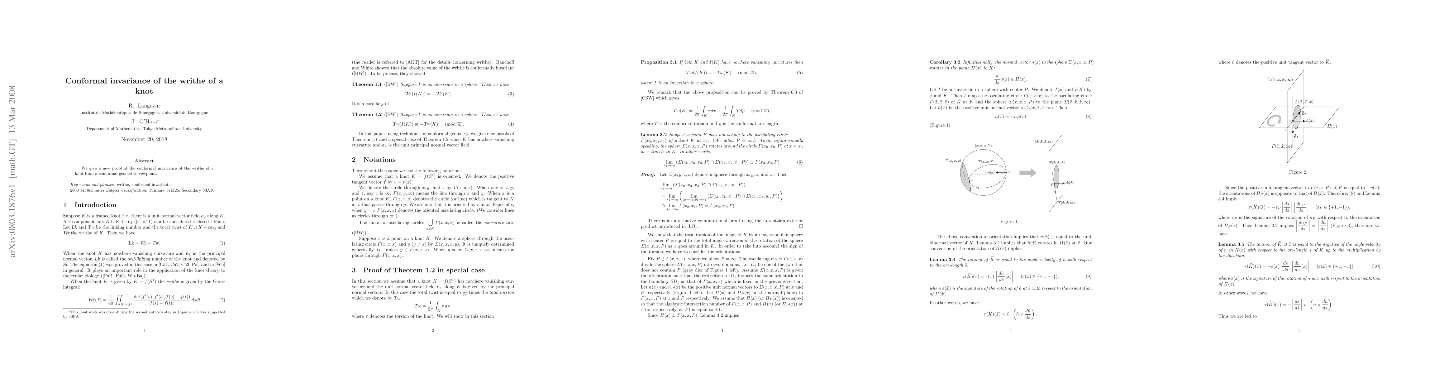 We give a new proof of an old theorem by Banchoff and White 1975 that claims that the writhe of a knot is conformally invariant.