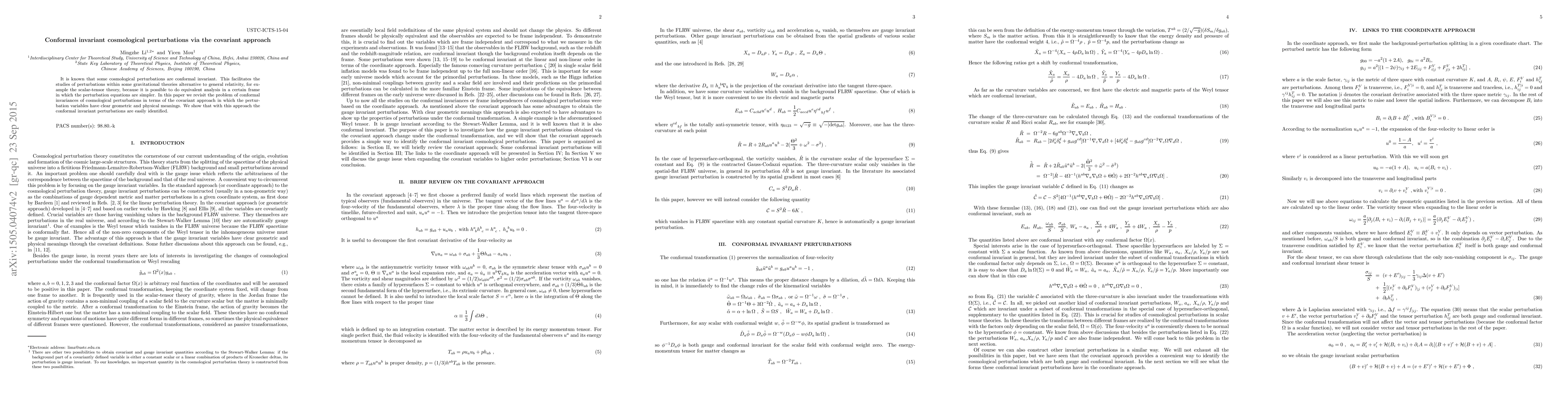 This paper uses the covariant approach to identify conformal invariant cosmological perturbations, simplifying analysis in alternative gravity theories like scalar-tensor theory. The findings provide a clearer understanding of these perturbations, facilitating further study.