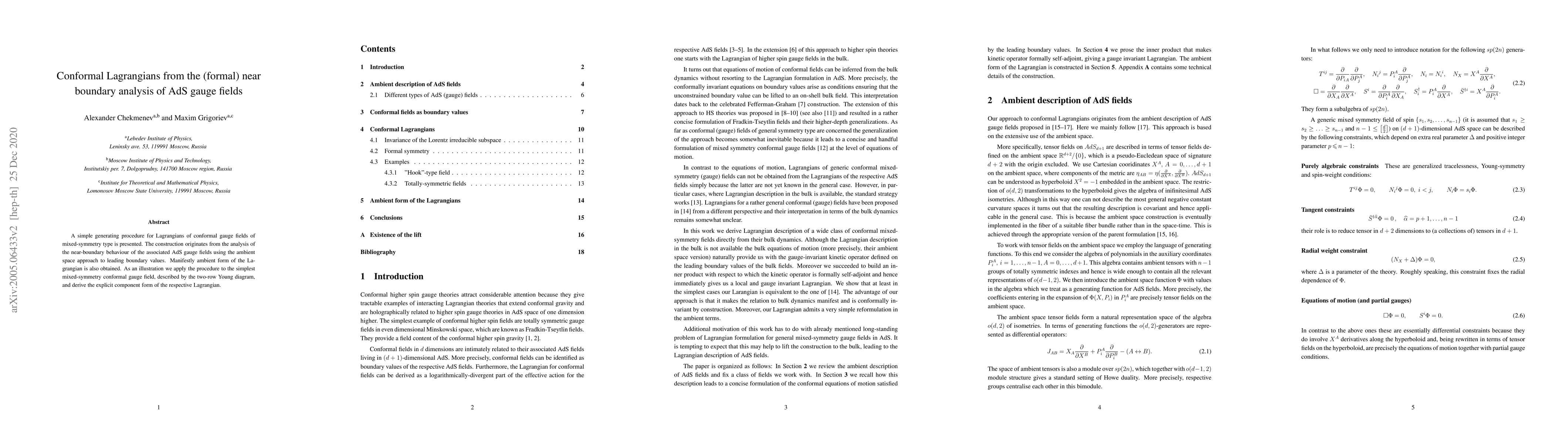 This paper presents a method to construct conformal Lagrangians from AdS gauge fields using near-boundary analysis, providing a manifestly ambient form of the Lagrangian.