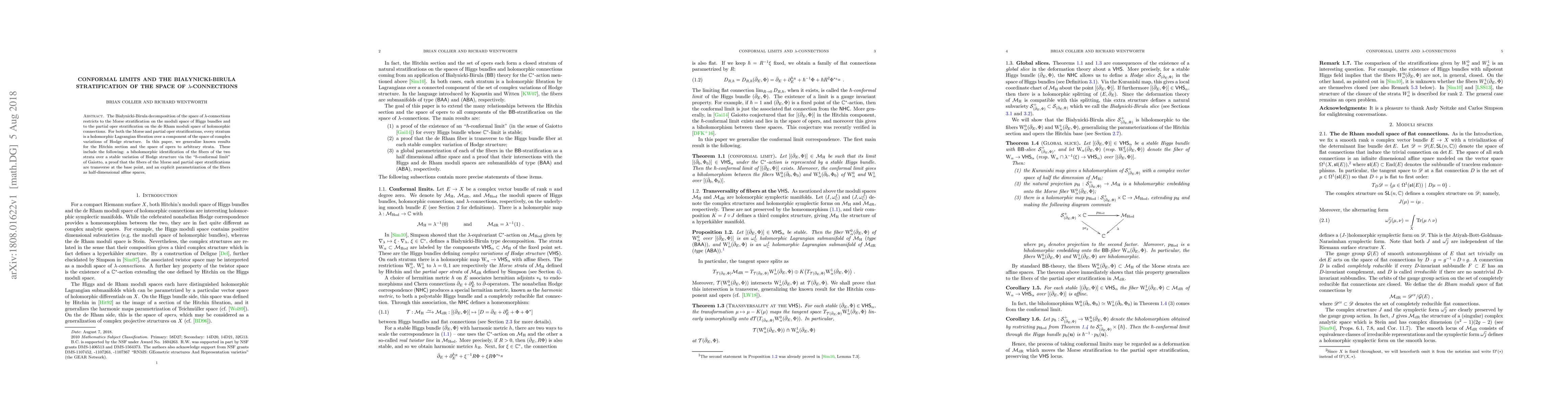 The Bialynicki-Birula decomposition of the space of lambda-connections restricts to the Morse stratification on the moduli space of Higgs bundles and to the partial oper stratification on the de Rham moduli space of holomorphic connections. For both the Morse and partial oper stratifications, every stratum is a holomorphic Lagrangian fibration over a component of the space of complex variations of Hodge structure. In this paper, we generalize known results for the Hitchin section and the space of opers to arbitrary strata. These include the following: a biholomorphic identification of the fibers of the two strata over a stable variation of Hodge structure via the "h-bar-conformal limit" of Gaiotto, a proof that the fibers of the Morse and partial oper stratifications are transverse at the base point, and an explicit parametrization of the fibers as half-dimensional affine spaces.