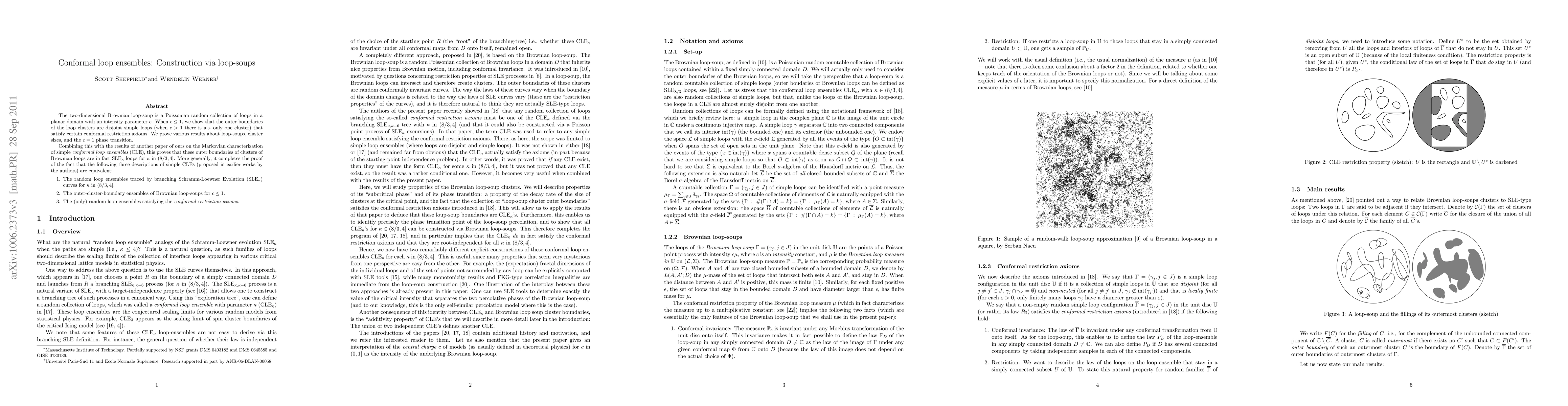 The paper constructs Conformal Loop Ensembles (CLE) via Brownian loop-soups, demonstrating their equivalence to Schramm-Loewner Evolution (SLE) curves for k in (8/3, 4].