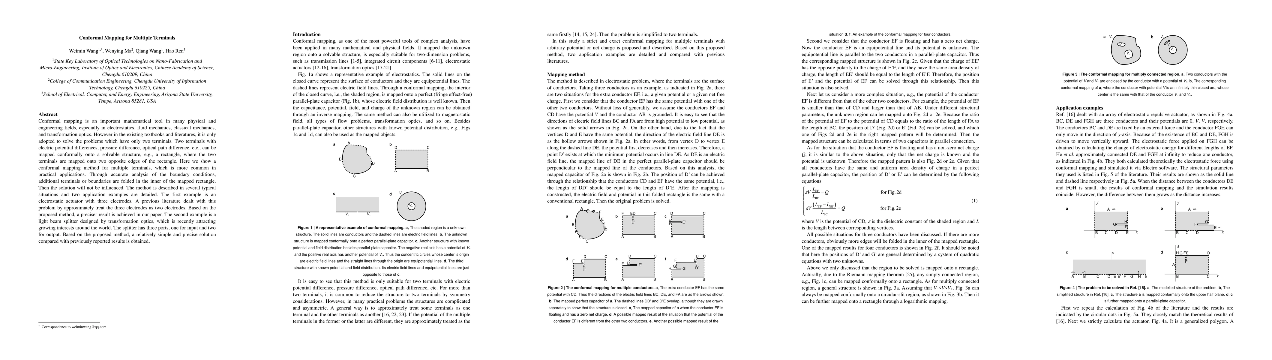 This paper introduces a conformal mapping method for problems involving multiple terminals, extending the traditional method that only handles two terminals. The proposed technique accurately folds additional terminals into the mapped structure, ensuring precise solutions in practical applications, as demonstrated through examples in electrostatic actuators and light beam splitters.