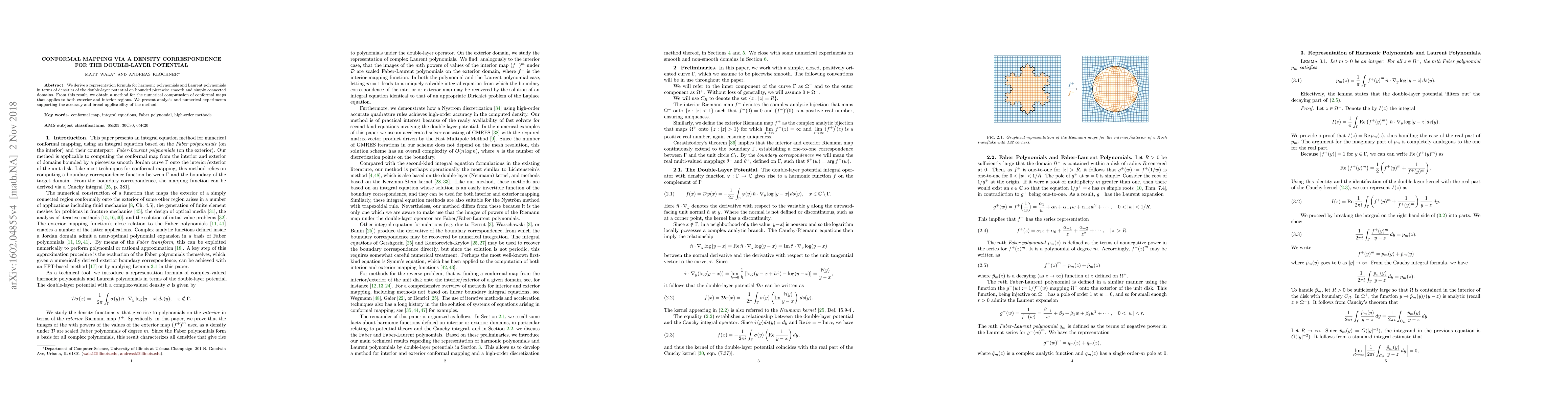 We derive a representation formula for harmonic polynomials and Laurent polynomials in terms of densities of the double-layer potential on bounded piecewise smooth and simply connected domains. From this result, we obtain a method for the numerical computation of conformal maps that applies to both exterior and interior regions. We present analysis and numerical experiments supporting the accuracy and broad applicability of the method.