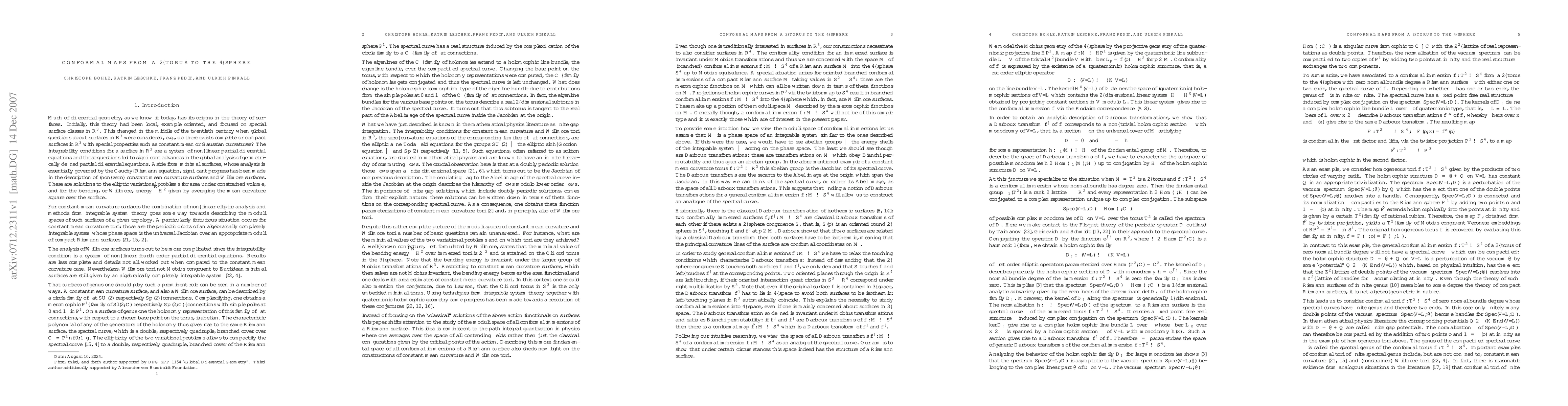 We study the space of conformal immersions of a 2-torus into the 4-sphere. The moduli space of generalized Darboux transforms of such an immersed torus has the structure of a Riemann surface, the spectral curve. This Riemann surface arises as the zero locus of the determinant of a holomorphic family of Dirac type operators parameterized over the complexified dual torus. The kernel line bundle of this family over the spectral curve describes the generalized Darboux transforms of the conformally immersed torus. If the spectral curve has finite genus the kernel bundle can be extended to the compactification of the spectral curve and we obtain a linear 2-torus worth of algebraic curves in projective 3-space. The original conformal immersion of the 2-torus is recovered as the orbit under this family of the point at infinity on the spectral curve projected to the 4-sphere via the twistor fibration.