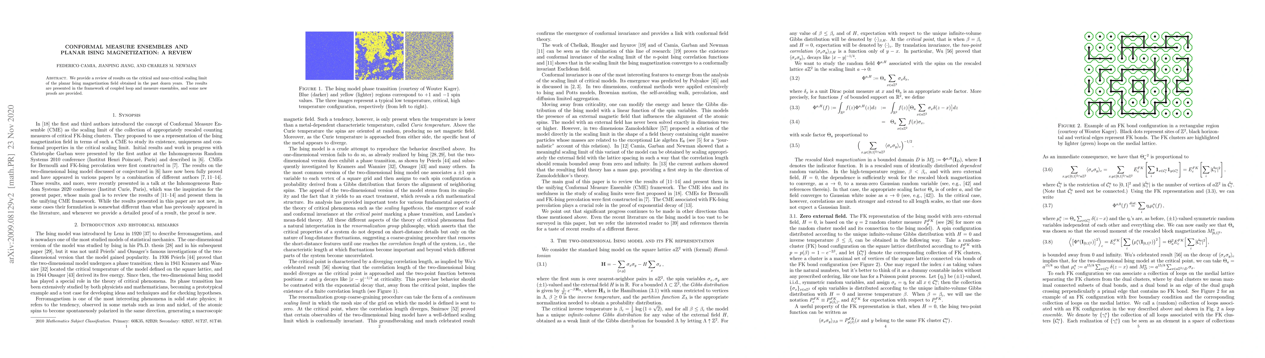 This paper reviews recent findings on the scaling limit of the planar Ising magnetization field, focusing on conformal measure ensembles and coupled loop ensembles, with new proofs enhancing the understanding of critical phenomena.