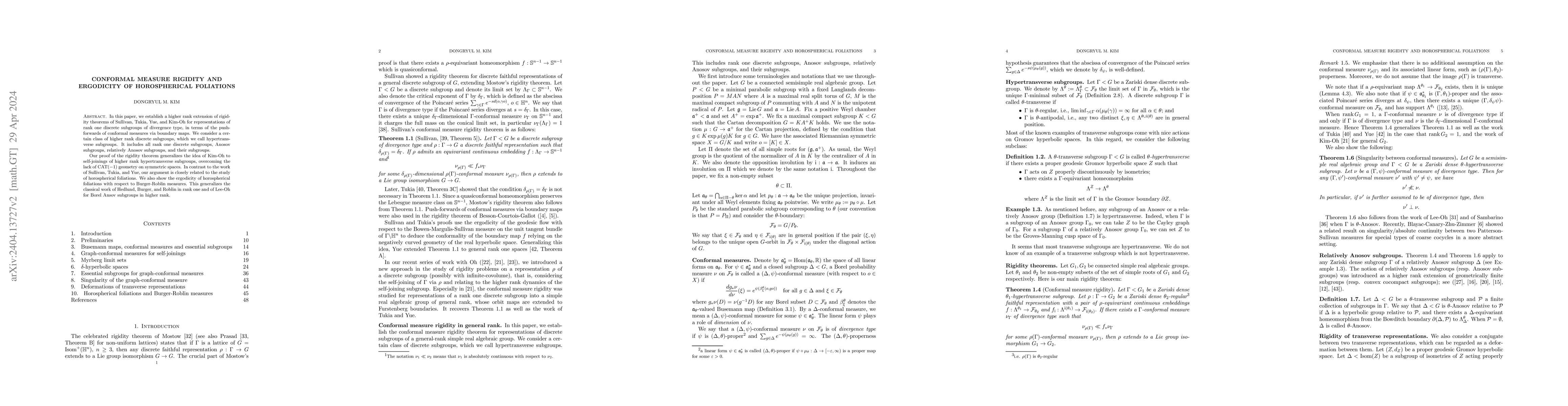 This paper extends rigidity theorems for higher rank discrete subgroups, focusing on hypertransverse subgroups, and generalizes results for conformal measures and horospherical foliations. It proves ergodicity for these foliations using methods that overcome geometry limitations and ties in with Burger-Roblin measures.