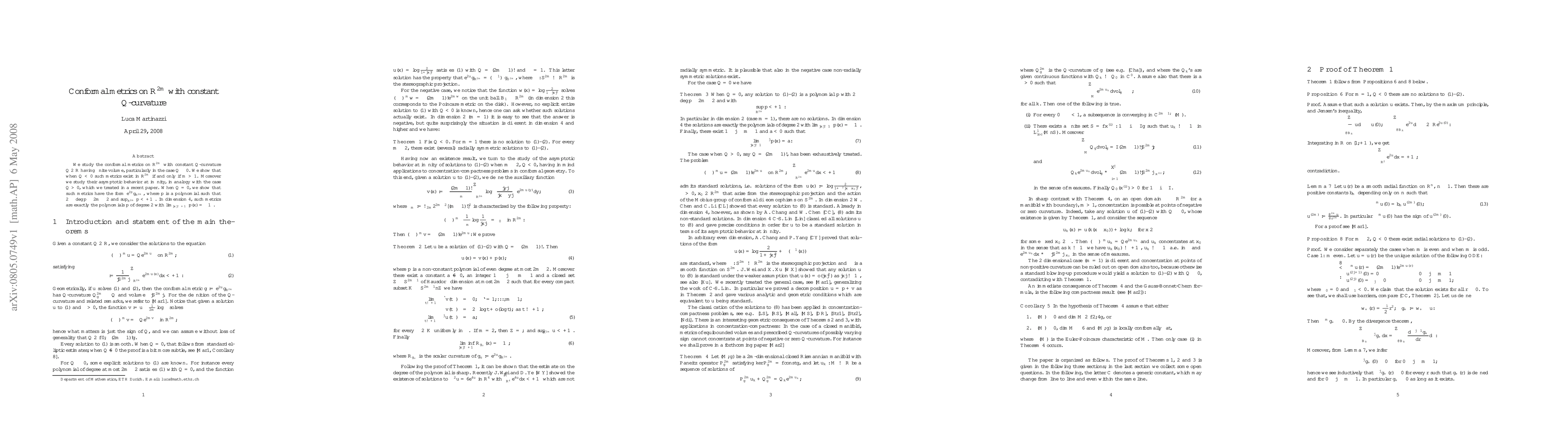This paper investigates conformal metrics on $\R^{2m}$ with constant Q-curvature $Q$, focusing on cases with finite volume and $Q\leq 0$. It reveals that metrics with $Q<0$ exist if and only if $m>1$, and explores their asymptotic behavior. When $Q=0$, metrics are of the form $e^{2p}g_{\R^{2m}}$ where $p$ is a polynomial of degree between 2 and $2m-2$ with finite supremum.