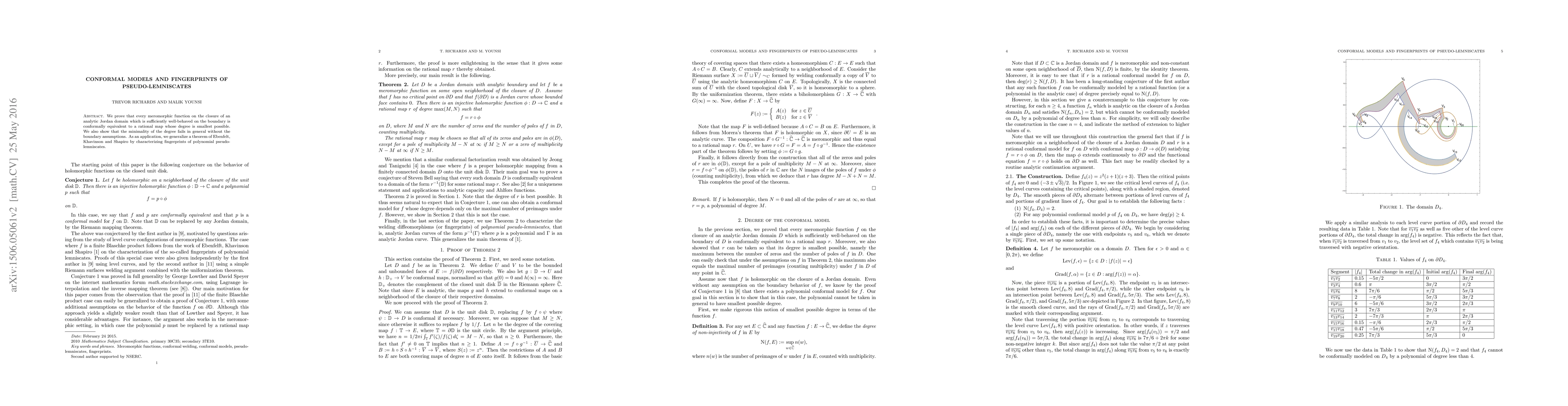 We prove that every function that is meromorphic on the closure of an analytic Jordan domain and sufficiently well-behaved on the boundary is conformally equivalent to a rational map whose degree is smallest possible. We also show that the minimality of the degree fails in general without the boundary assumptions. As an application, we generalize a theorem of Ebenfelt, Khavinson and Shapiro by characterizing fingerprints of polynomial pseudo-lemniscates.