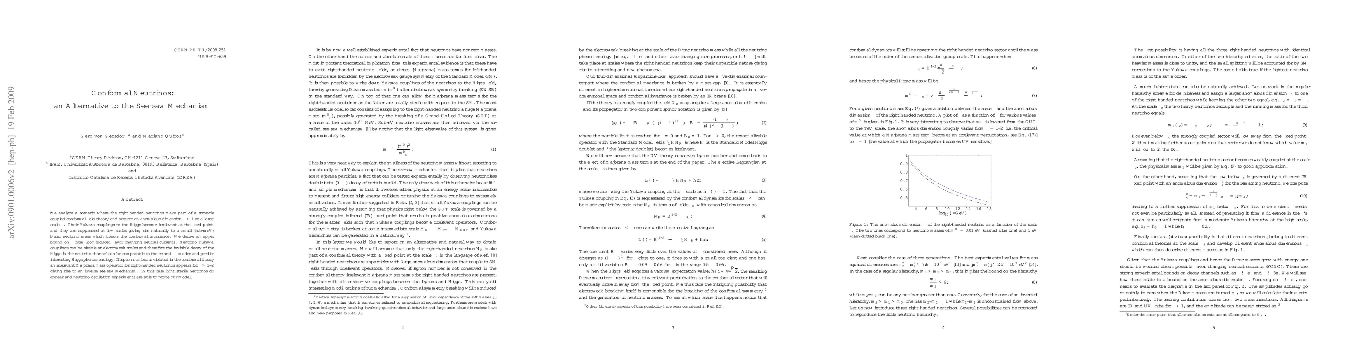 This paper explores an alternative to the see-saw mechanism for generating small neutrino masses via conformal field theory, where right-handed neutrinos acquire an anomalous dimension, leading to a natural sub-meV Dirac mass. It predicts significant Higgs phenomenology and potential sterile neutrinos if lepton number is violated.