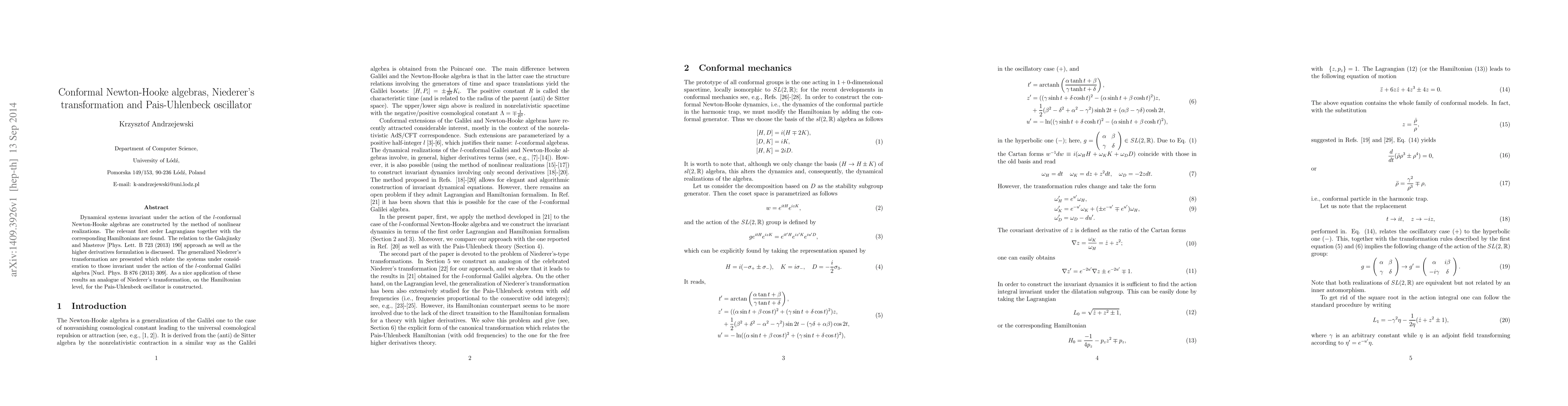 This paper constructs dynamical systems invariant under the l-conformal Newton-Hooke algebra using nonlinear realizations and finds their first-order Lagrangians and corresponding Hamiltonians. It also discusses the generalized Niederer's transformation linking these systems to those invariant under the l-conformal Galilei algebra and applies these transformations to the Pais-Uhlenbeck oscillator.