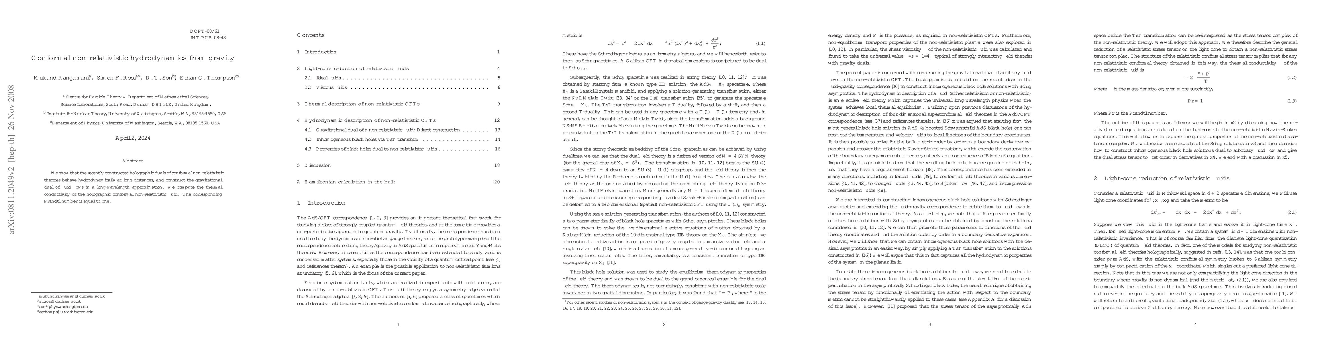 This paper demonstrates that holographic duals of conformal non-relativistic theories exhibit hydrodynamic behavior at long distances and constructs a gravitational dual for fluid flows. It computes the thermal conductivity of the holographic fluid, revealing a Prandtl number of one.