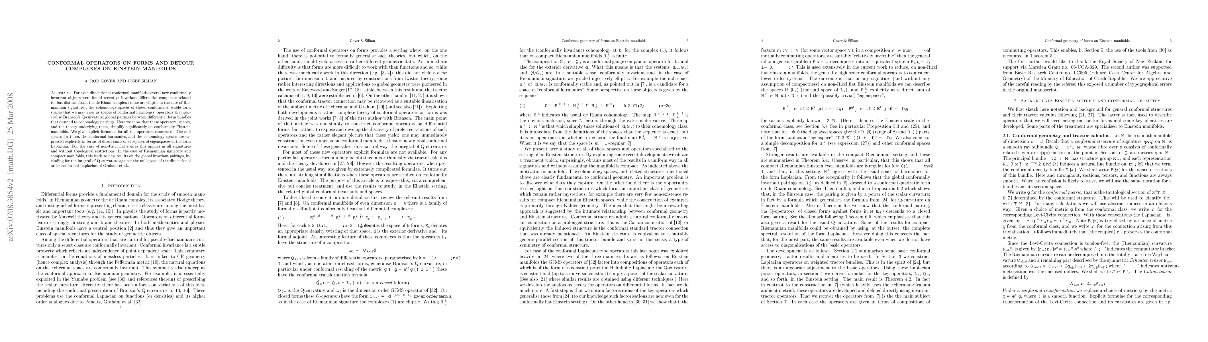 The paper presents explicit formulae for conformally invariant operators on Einstein manifolds and demonstrates their simplification, along with explicit descriptions of null spaces, conformal harmonics, and cohomology spaces.