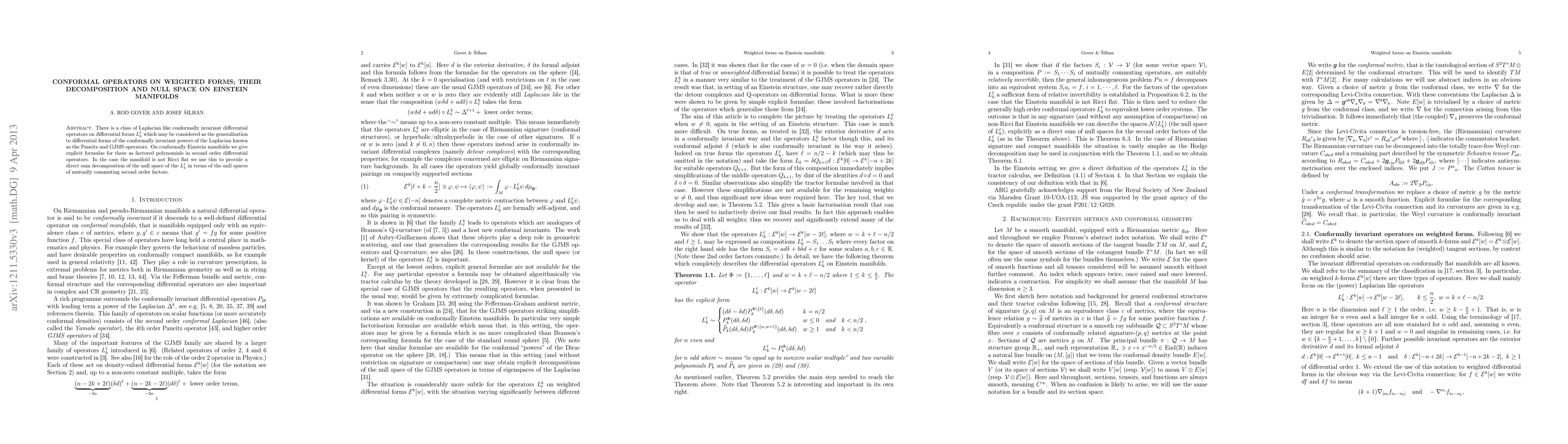 This paper explores conformally invariant differential operators on differential forms, known as $L^\ell_k$, and provides explicit formulae for them on conformally Einstein manifolds. It also decomposes the null space of $L^\ell_k$ on non-Ricci flat manifolds into direct sums of null spaces of commuting second-order factors.