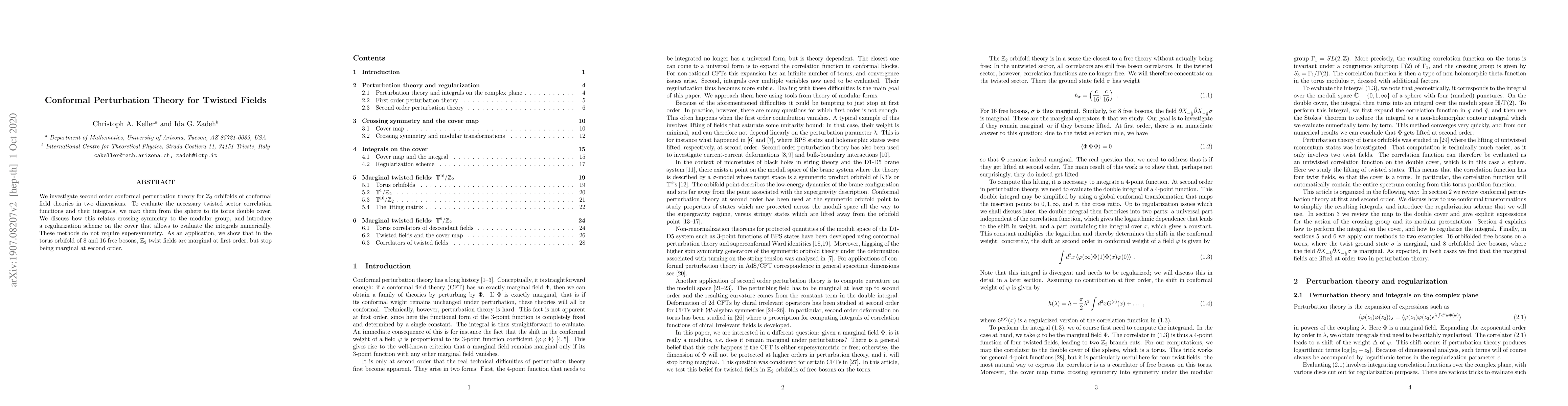 Two-line summary: This paper develops a second-order conformal perturbation theory for $\mathbb{Z}_2$ orbifolds of two-dimensional conformal field theories. It maps twisted sector correlation functions from the sphere to its torus double cover, relates crossing symmetry to the modular group, and introduces a regularization scheme for numerical evaluation, revealing that $\mathbb{Z}_2$ twist fields are marginal at first order but not at second order in the torus orbifold of free bosons.