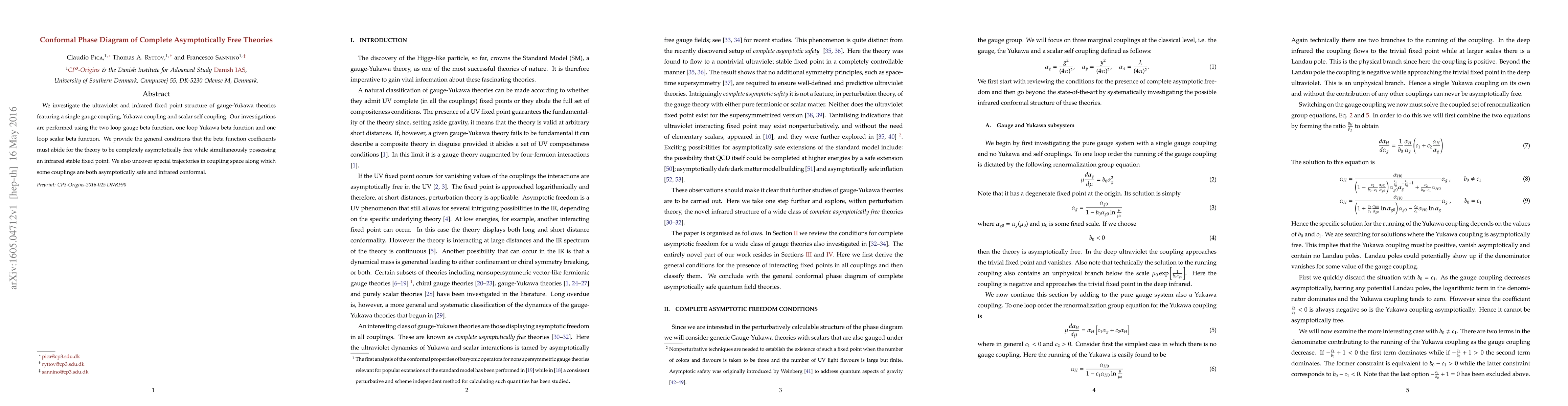 This paper explores the conformal phase diagram of gauge-Yukawa theories, focusing on the conditions for complete asymptotic freedom and the existence of an infrared stable fixed point. It identifies special coupling trajectories where the theory is both asymptotically safe and infrared conformal.