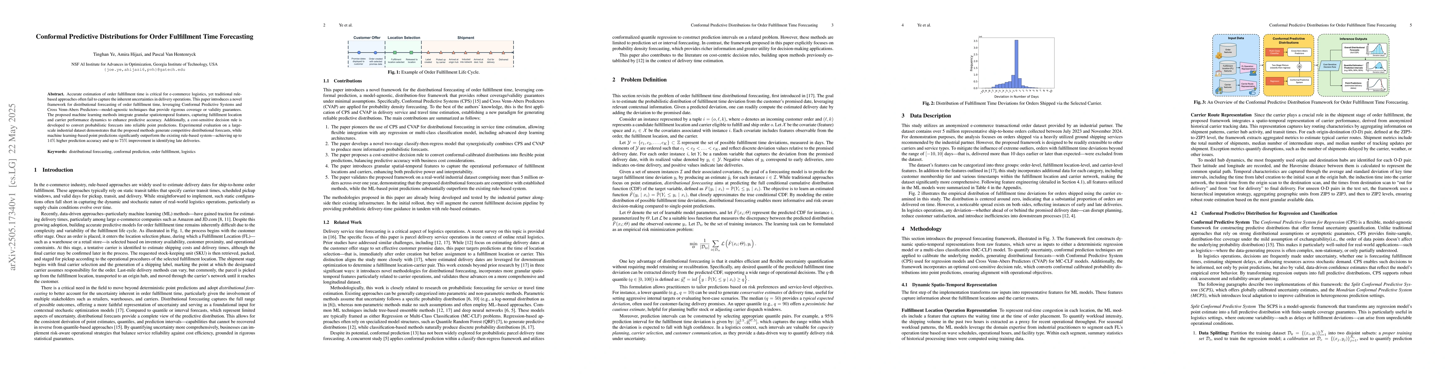 The research introduces a novel framework for distributional forecasting of order fulfillment time using Conformal Predictive Systems and Cross Venn-Abers Predictors, integrating granular spatiotemporal features and a cost-sensitive decision rule.