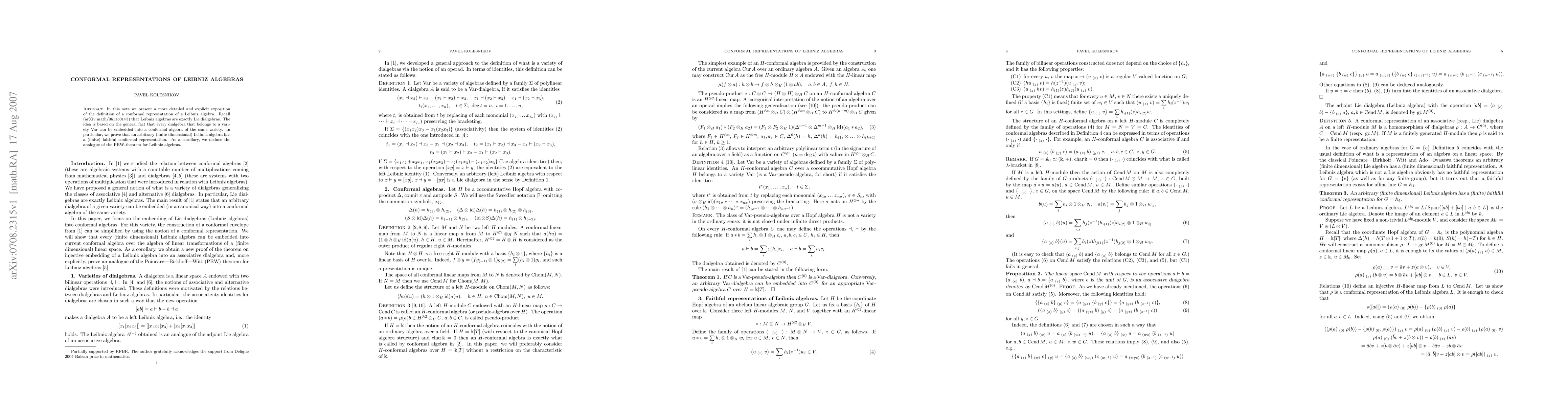 This paper provides a detailed definition and proof of conformal representations for Leibniz algebras, showing that any finite-dimensional Leibniz algebra can be embedded in a conformal algebra, leading to an analogue of the Poincaré-Birkhoff-Witt theorem for these structures.