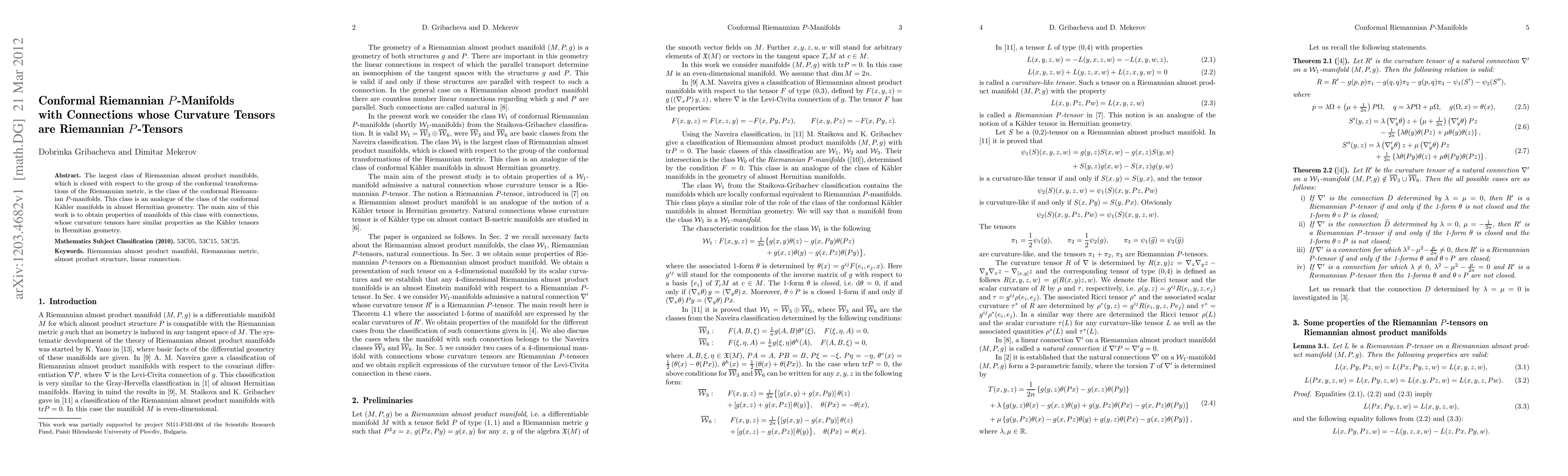Summary: The paper investigates conformal Riemannian P-manifolds, a class analogous to conformal Kähler manifolds, and focuses on connections whose curvature tensors share properties with Kähler tensors in Hermitian geometry. The study aims to establish properties of these manifolds with such connections.