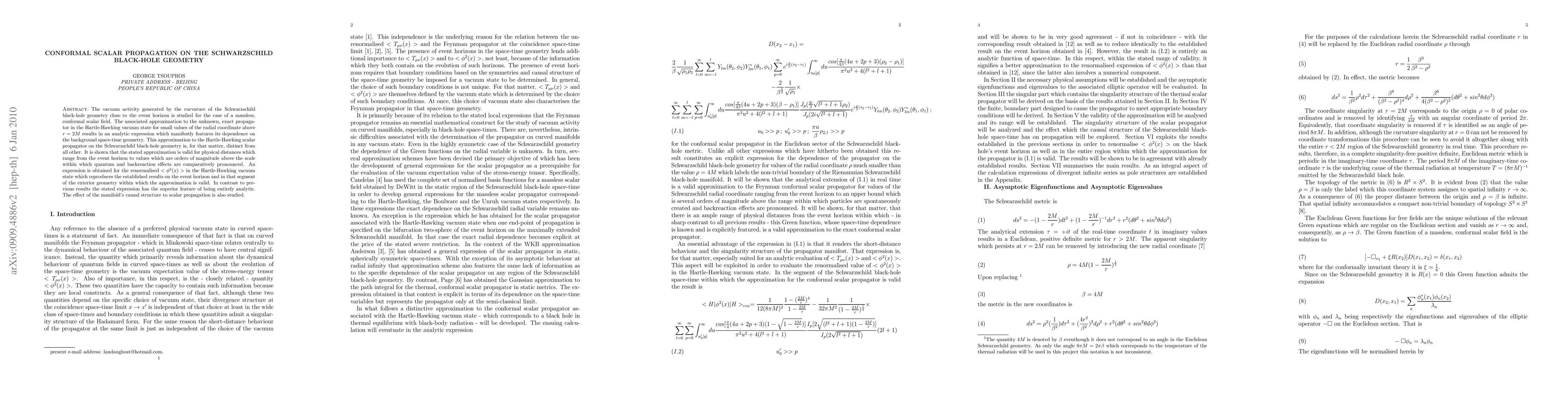 The vacuum activity generated by the curvature of the Schwarzschild black-hole geometry close to the event horizon is studied for the case of a massless, conformal scalar field. The associated approximation to the unknown, exact propagator in the Hartle-Hawking vacuum state for small values of the radial coordinate above $ r = 2M$ results in an analytic expression which manifestly features its dependence on the background space-time geometry. This approximation to the Hartle-Hawking scalar propagator on the Schwarzschild black-hole geometry is, for that matter, distinct from all other. It is shown that the stated approximation is valid for physical distances which range from the event horizon to values which are orders of magnitude above the scale within which quantum and backreaction effects are comparatively pronounced. An expression is obtained for the renormalised $ <\phi^2(x)>$ in the Hartle-Hawking vacuum state which reproduces the established results on the event horizon and in that segment of the exterior geometry within which the approximation is valid. In contrast to previous results the stated expression has the superior feature of being entirely analytic. The effect of the manifold's causal structure to scalar propagation is also studied.