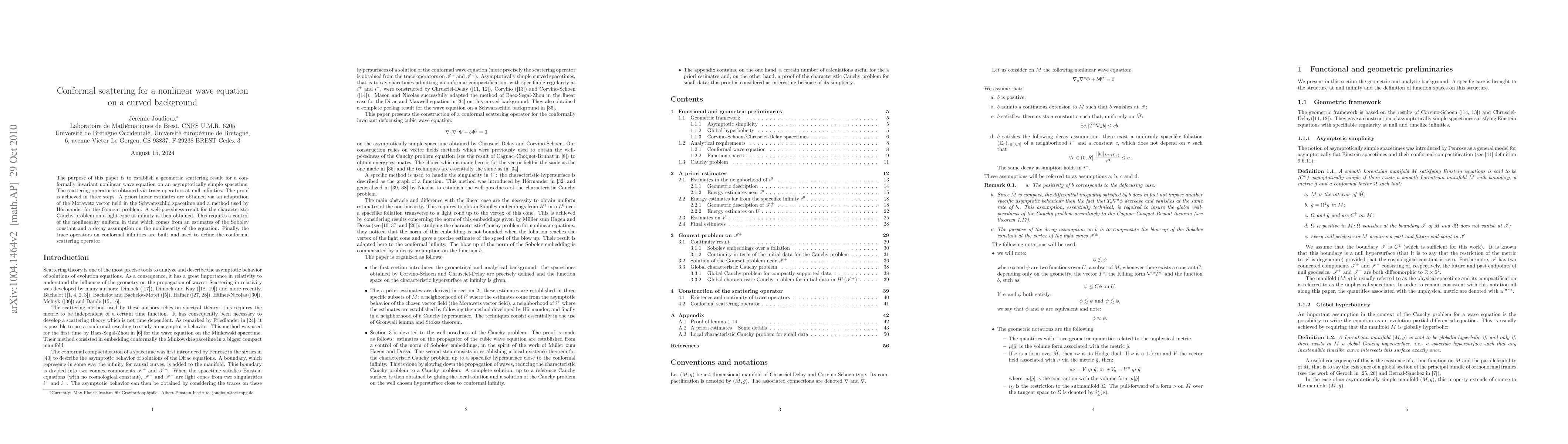 This paper establishes a geometric scattering result for a conformally invariant nonlinear wave equation on an asymptotically simple spacetime, utilizing trace operators at null infinities. The proof involves linear estimates, solving the characteristic Cauchy problem, and constructing trace operators to define the conformal scattering operator.