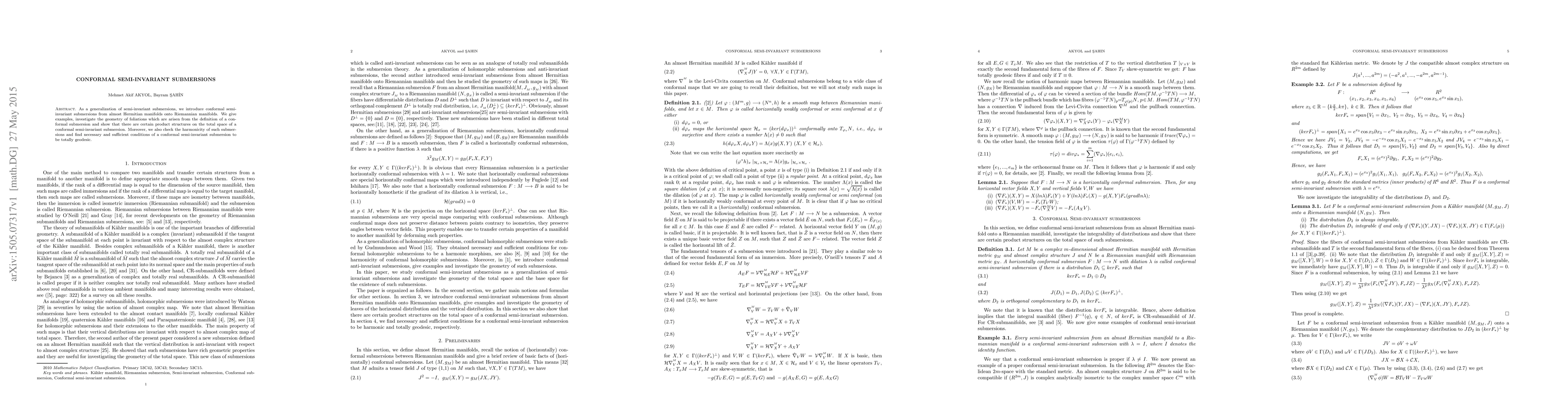 This paper generalizes semi-invariant submersions to conformal semi-invariant submersions between almost Hermitian and Riemannian manifolds, explores the geometry of resulting foliations, and identifies product structures in the total space. It also examines the harmonicity and conditions for total geodesicity of these submersions.