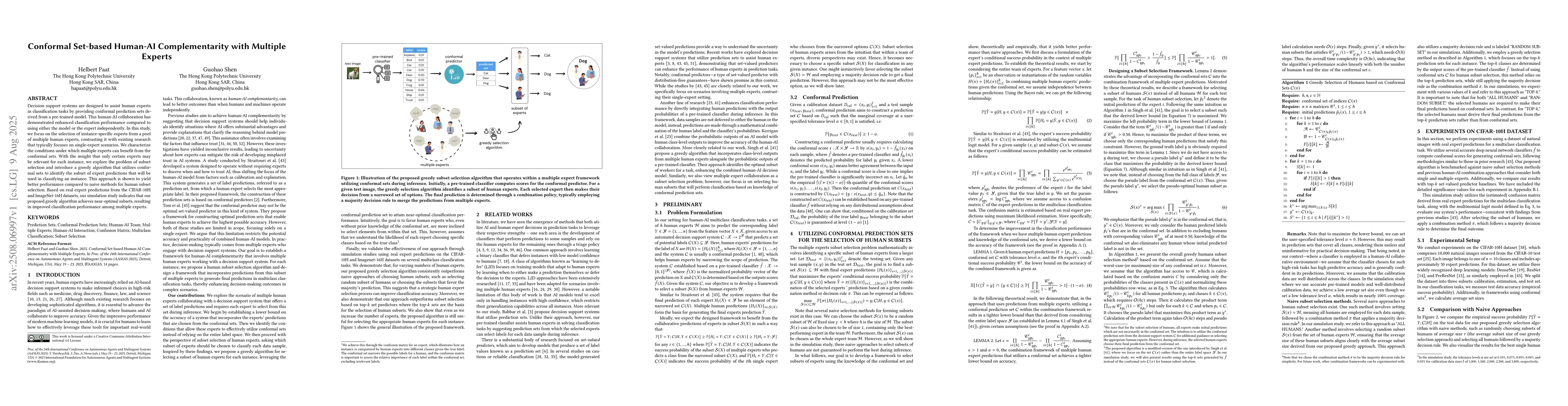 The paper introduces a greedy algorithm for human subset selection based on conformal sets, which improves classification performance in human-AI collaborative environments.