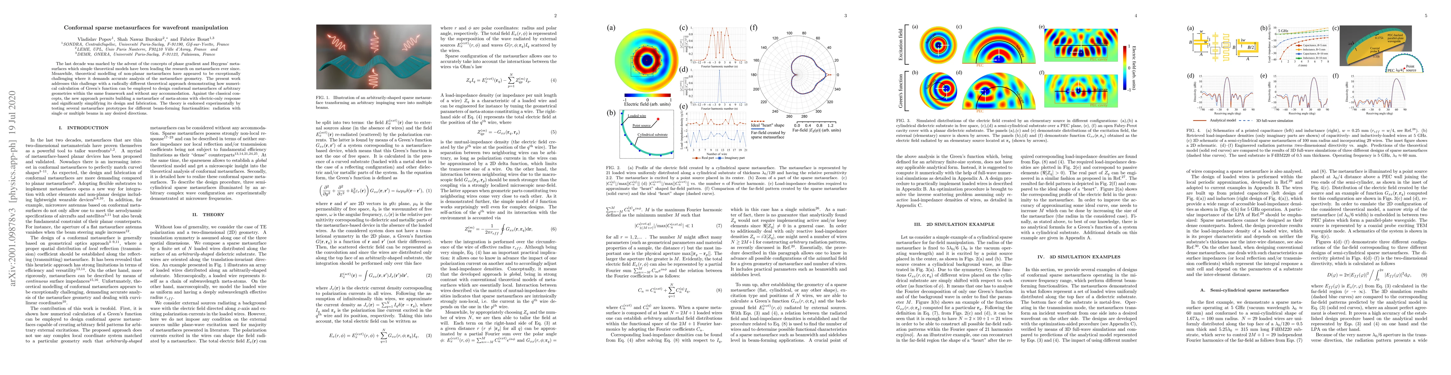 This paper presents a novel method for designing conformal sparse metasurfaces using numerical calculation of Green's function, enabling efficient wavefront manipulation with simplified electric response, thereby reducing design and fabrication complexity.