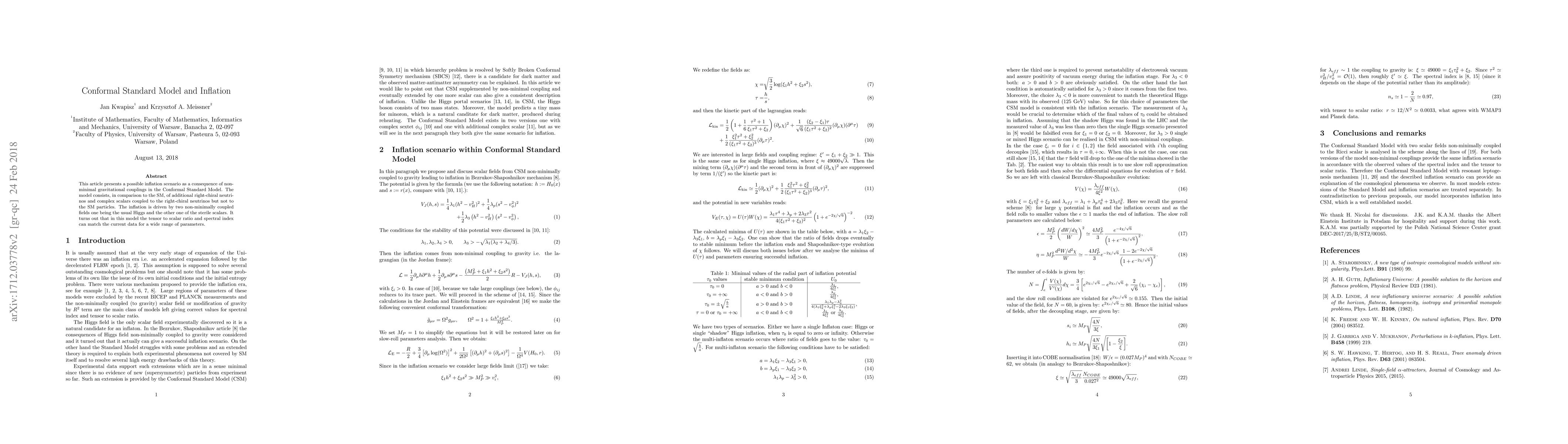 This article presents a possible inflation scenario as a consequence of non-minimal gravitational couplings in the Conformal Standard Model. The model consists, in comparison to the SM, of additional right-chiral neutrinos and complex scalars coupled to the right-chiral neutrinos but not to the SM particles. The inflation is driven by two non-minimally coupled fields one being the usual Higgs and the other one of the sterile scalars. It turns out that in this model the tensor to scalar ratio and spectral index can match the current data for a wide range of parameters.