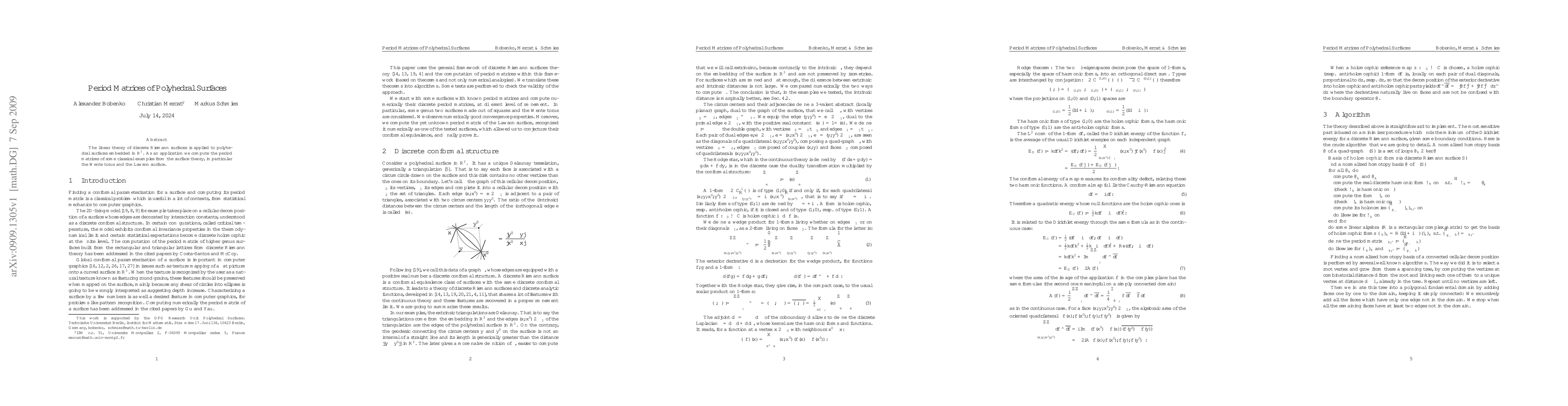 Researchers applied a mathematical theory to study polyhedral surfaces in 3D space, computing their holomorphic forms and period matrices, with new results for the Lawson genus-2 surface.